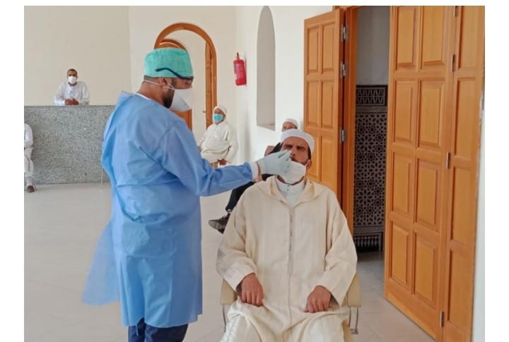 فبحضور رئيس المجلس العلمي والمدير الجهوي لوزارة الأوقاف والشؤون الإسلامية بجهة مراكش آسفي ومثلي المصالح الصحية والسلطات المحلية،تم إخضاع هذه الفئة من القيمين الدينيين التحليلات المخبرية،الخاصة بفيروس كوفيد 19،وتزويدهم بالبروتوكول الصحي والوقاءي،الواجب تطبيقه،بمختلف المساجد،وفي مقدمتها تعقيم الفضاءات،الداخلية والخارجية لبيوت الله،والالتزام الاجباري بالتباعد الجسدي واحترام مسافة الامان بين صفوف المصلين ،بالاضافة إلى ارتداء الكمامات الواقية،والالتزام بتدابير النظافة والوقاية، وغيرها من إجراءات البروتوكول الصحي والوقاءي الذي وضعته السلطات الصحية ببلادنا