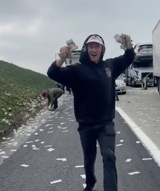 تناثرت آلاف الدولارات على طريق سريع بولاية إلينوي الأميركية، بفعل حادث فريد. وأوردت وسائل إعلام أميركية أن الحادث وقع حين فقد سائق سيارة تحمل نقودا، السيطرة عليها فاصطدم بالجدار الحديدي للشارع قبل أن يصطدم بسيارة ثانية. وحاولت سيارة ثالثة تفادي الاصطدام، لكنها ارتطمت بالسيارة التي كانت تحمل نقود لعبة لفيديو القمار. ويظهر شريط فيديو عناصر الشرطة وهم يجمعون الدولارات المتناثرة، التي كانت معظمها مبللة بفعل الأمطار. واستمرت الشرطة في إغلاق الطريق لمدة ساعة كاملة أمام الحركة السريعة من أجل جمع الأموال. وأدى الحادث إلى إصابة شخص واحد بجروح طفيفة. وقال ضابط في شرطة المرور المحلية، لسبب ما تساقط المال من شاحنة مصفحة.. انفتح أحد أبواب الشاحنة وسقطت منه أكياس النقود، وتمزق أحد الأكياس، وكانت أوراق نقدية تحلق في كافة أنحاء الطريق السريع وقالت السلطات إن أوراق الدولار التي تناثرت عبر الطريق كانت بالدرجة الأولى من فئتي دولار و20 دولارا. وتداولت مقاطع فيديو عبر مواقع التواصل الاجتماعي تظهر مشهدا عجيبا لأوراق دولار متناثرة على الطريق وناس لا يصدقون عيونهم ويجمعون الدولارات بفرح وحماس.