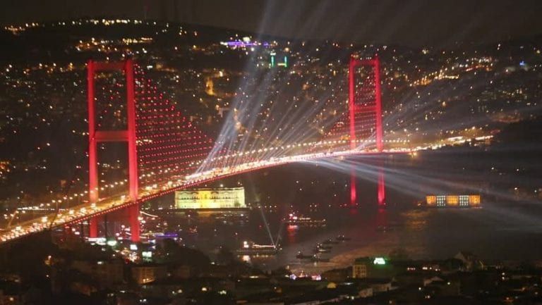 جسر البوسفور هو أروع جسر موجود في تركيا فهو يعتبر من أفضل المعالم الأثرية الموجودة في تركيا حيث أنه أحد الثلاثة جسور المعلقة في مضيق البوسفور، في حيطة جسر السلطان محمد الفاتح، وجسر السلطان سليم الأول، فعند زيارتك لتركيا لا تفوت هذا المنظر الرائع، كما سنتعرف عليه أكثر من خلال السطور التالية فتابعونا. يسمى جسر شهداء 15 تموز، ومواصفاته كما يلي: * طول الجسر: 1560 متر. * عرض الجسر: 33.40 متر. * ارتفاع الجسر: 165 متر. يقع جسر البسفور على مضيق البسفور في تركيا وتحديجًا في مدينة اسطنبول، كما أنه يصل بين البحر الأسود وبحر مرمرة بالرغم من أن كلًا منهم في جهة، وهو من الجسور الرائعة التي تقوم بتقسيم مدينة اسطنبول إلى قسم آسيوي وقسم أروبي، كما أنه يقوم بتسهيل عملية الحركة والوصول بين كلًا من القارتين. من بنى جسر البوسفور؟ قام ببناء الجسر 35 مهندس، و400 عامل، وقد اتخذت تكلفة بنائه 200 مليون دولار، وتم الانتهاء من بناءه في تاريخ 30 أكتوبر 1973م. ترتيب جسر البوسفور عالميًا جسر البوسفور طويل للغاية حيث أنه يعتبر في الترتيب التاسع من حيث الطول وذلك من ترتيب الجسور المعلقة في جميع أنحاء العالم، وترتيبه الثالث محليًا بعد ترتيب جسر السلطان محمد الفاتح وجسر السلطان سليم. جسر البوسفور ليلا يكون جسر البسفور رائع جدًا في الليل فهو من أروع الجسور في تركيا على الإطلاق، وفكرة بناءه تعود إلى العصور القديمة حيث قام ماندروسلين أوف ساموس بتصميم جسر عائم عبر مضيق البسفور لكي يربط بين آسيا وأوروبا، وكان هذا الجسر سببًا في جعل الإمبراطور داريوس يلاحق السكيثيين الهاربين. مقاهي جسر البوسفور يوجد العديد من المقاهي المنتشرة على جسر البسفور ففيها يتم تقديم الشاي بطريقة وطعم ساحر. أهم المعلومات عن جسر البوسفور * الجسر يربط بين مضيق البسفور وبحر مرمرة. * هو أول جسر تم تشييده عبر مضيق البوسفور. * الجسر ذا هيكل معدني. * الجسر ينقسم لخمس أجزاء تصل بين آسيا وأوروبا. * الجسر له أربع تفريعات جانبية طولها يصل مابين 40 و64 متر. * هو الجسر الوحيد الذي يربط بين قارتين في العالم. * وضع نظام إضاءة الجسر في عام 2007 للإضاءة ليلًا. * يمر من خلاله ما يقرب من 180.000 مركبة في اليوم. * يقام عليه ماراثون أوراسيا كل عام في شهر أكتوبر وهو أول ماراثون تتم إقامته عبر قارتين. * لعبة فينوس ويليامز نجمة التنس الأمريكية عرض مباراة مع اللاعبة التركية إيبك شونوغلو على الجسر وهي أو مبارة تنس يتم لعبها بين قارتين. يوجد حول الجسر العديد من المناظر الأثرية الرائعة الموجودة في مدينة اسطنبول ومنها: * قصر دولمة بهجة. * مسجد أورتاكوي. * قلعة مدينة اسطنبول. * مباني وقصور كثيرة. * الكثير من المناظر الطبيعية الرائعة والخلابة. * بعض المنازل المبنية داخل التلال. يعتبر جسر البوسفور هو أحد ثلاث جسور موجودة في تركيا والجيران الآخرين هما: وفي النهاية فإن جسر البوسفور كان أول جسر يبنى على مضيق البسفور في تركيا وتحديدًا في مدينة اسطنبول، فلا تترددوا في زيارة ذلك الجسر الرائع لتتمتعوا بالمعالم الأثرية التي توجد حوله، وهو بمفرده كنز أسري رائع