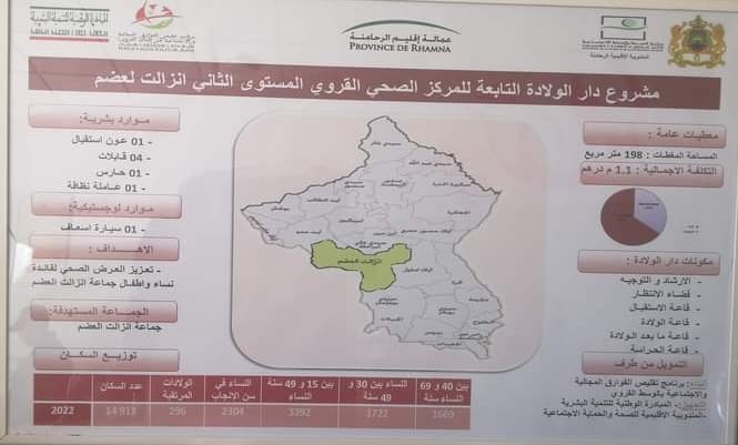 وقد اطلع الوفد المشرف على تدشين هذه المنشأة الصحية على مرافق دار الولادة البالغة مساحتها 198متر مربع . وقد تم تمويلها في اطار شراكة بين برامج تقليص الفوارق المجالية والاجتماعية بالوسط القروي، الذي مول اشغال البناء، ببنما تتكلف كل من وزارة الصحة والحماية الاجتماعية والمبادرة الوطنية للتنمية البشرية بتجهيزات ومعدات طبية والاسرة وباقي التجهيزات