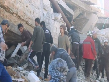 تمكن المسعفون ورجال الدفاع المدني في مدينة معرة النعمان، في محافظة إدلب في سوريا، من انتشال ممرضة من تحت أنقاض مشفى تابع لمنظمة أطباء بلا حدود، قصفته الطائرات الروسية الاثنين. وأظهر تسجيل فيديو نشره نشطاء على يوتيوب، الثلاثاء؛ المسعفين وهم يسحبون الممرضة من تحت ركام المشفى. وبدا أن الممرضة لاتزال على قيد الحياة، فيما علت أصوات تقول "الحمد لله"، بعد إنقاذ الممرضة. وإلى جانب قصف مشفى معرة النعمان، تعرض مشفى للتوليد والأطفال في مدينة أعزاز، شمال حلب، للقصف بالصواريخ، ما أدى إلى إخراجه عن الخدمة. وفي المجمل، قتل أكثر من 50 مدنيا، بينهم أطفال، في قصف مدارس ومشاف في شمال سوريا الاثنين. ومنذ بدء القصف الروسي في سبتمبر الماضي، تعرض 22 مستشفى و27 مدرسة للقصف الجوي.