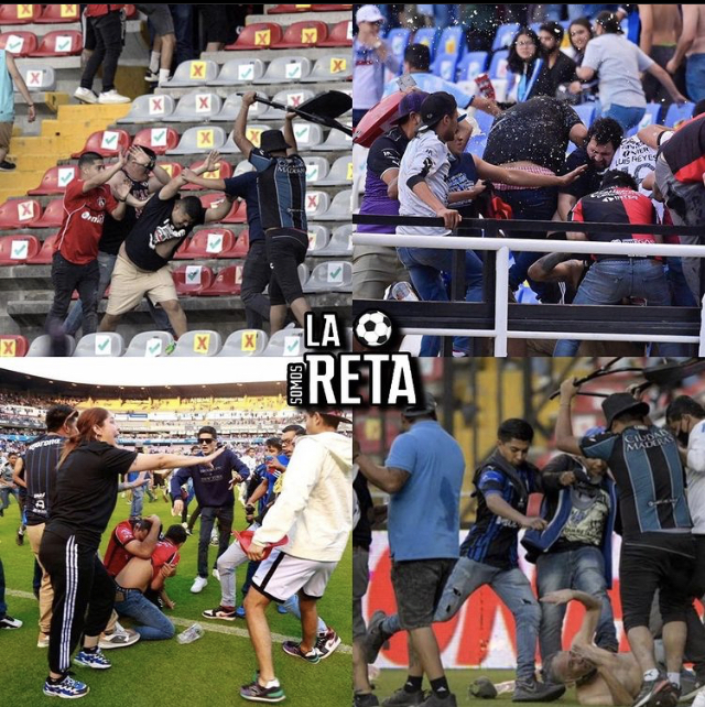 قُتل عشرين شخصًا في أعمال شغب خلال مباراة كويريتارو ضد أطلس ، في الجولة التاسعة من المرحلة النهائية لموسم 2021-2022 من الدوري المكسيكي ، بانتظار البيان الرسمي بشأن عدد الضحايا. وبدأت الأحداث المؤسفة في الدقيقة 62 من المباراة التي أقيمت على ملعب لا كوريجيدورا ، موطن نادي كويريتارو ، الذي كان متأخرا بالنتيجة بهدف مجاني ، حيث شنت الجماهير المضيفة هجوما على الجماهير الضيوف. بالسكاكين ، وشوهدت العائلات تحاول الهروب من العداء الذي امتد من المدرجات إلى الملعب. وأظهرت مقاطع فيديو انتشرت على مواقع التواصل الاجتماعي مدى وحشية الاعتداءات وخطورة ما حدث ، إضافة إلى الضرب العنيف على أنصاره ، خاصة بعد أن فتحت القوات الأمنية البوابات الفاصلة بين مدرجات الاستاد ، في محاولة لحماية العائلات في المنطقة. يقف من القتال. ودفعت هذه الأحداث الدوري المكسيكي للإعلان رسميًا عن تعليق النشاط وعدم إقامة باقي مباريات الدور التاسع ، فيما أدان نادي أطلس الحادث وطالب الاتحاد المكسيكي بالتحقيق في ما حدث ومعاقبة المسؤولين بشدة