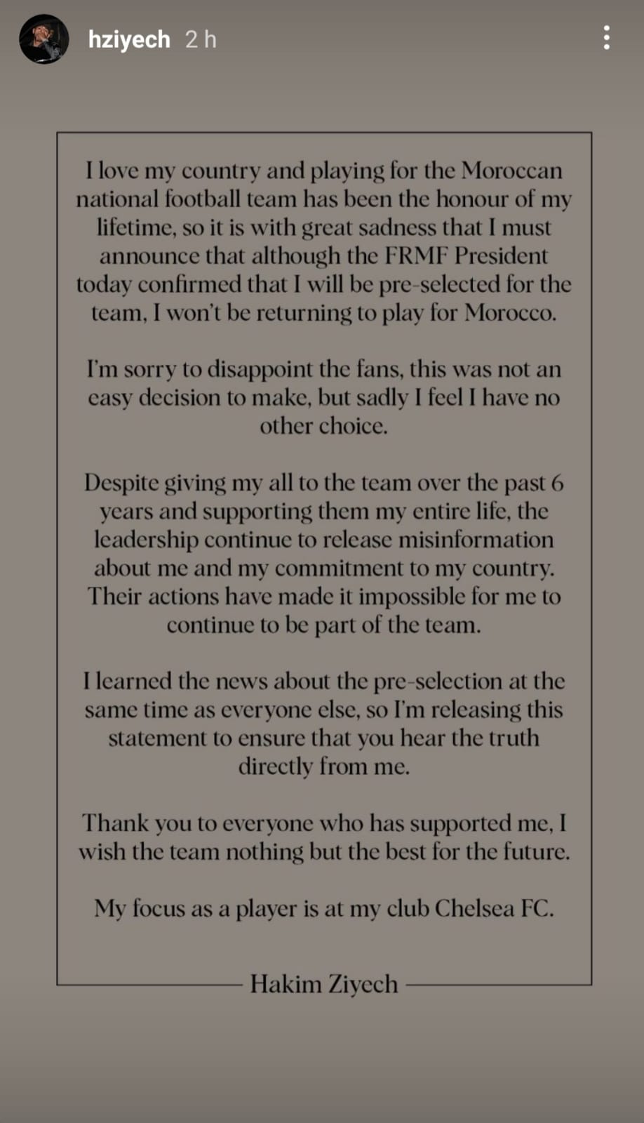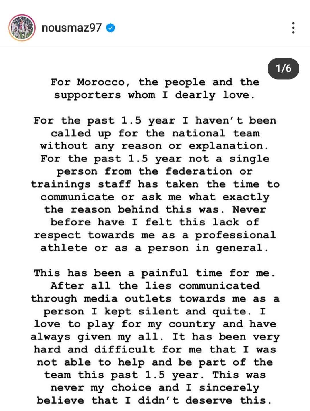 وأعلن اللاعبان قرارهما عبر حسابهما الشخصي على موقع التواصل الإجتماعي انستغرام ، حيث عبرا عن حبهما للمغرب، فيما أرجعا سبب القرار للمعاملة للتي تلقياها من طرف المسؤولين عن المنتخب الوطني خلال الفترة الماضية