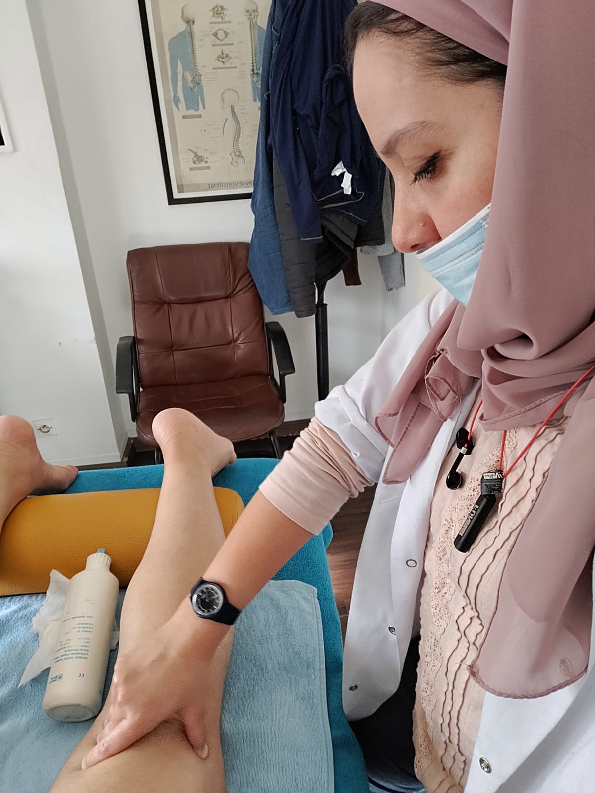 - العلاج اليدوي الذي نعتمد فيه على التدليك الطبي، أشير إلى الطبي بإستعمال تقنيات لتفكيك العقد الموجودة بالعضلة المسببة للألم عند الحركة لإسترجاع نشاطها و حيويتها وليونتها كما أن هذه التقنية تمكن من تنشيط الدورة الدموية و إزالة تكتل الدم الفاسد على العضلة، و نعتمد أيضا في هذه التقنية على تحريك المفاصل بهدف استرجاع حركتها الطيبعية