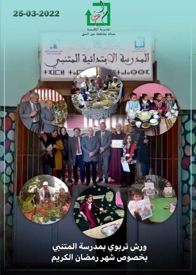فتحت المدرسة الابتدائية المتنبي التابعة لمديرية عين الشق ورشا تربويا اسدل عليه الستار يوم 25مارس 2022 بحضور السيد رئيس مصلحة تأطير المؤسسات التعليمية نيابة على السيدة المديرة الاقليمية والذي كان عنوانه" رمضانيات المتنبي"مع مجموعة من الفعاليات المهتمة بالشأن التربوي مفتشون وأساتذة وأعضاء مكتب جمعية أباء وأمهات وأولياء التلاميذ وناشطات وناشطون جمعويون والتلاميذ. بعد إقصائيات ومنافسات استمرت أسبوعا حول: ترتيل القرأن الكريم بالطريقة المغربية وطريقة أداء صلاة التراويح ومنافسات عروض الزي التقليدي الأصيل الخاص بيوم عيد الفطر للبنات ومنافسات الرقصات الفولكلورية من التراث المغربي الاصيل ومنافسات رياضية...واختتمت المنافسات بتوزيع جوائز على المتفوقات والمتفوقين وشواهد تقديرية على المشاركات والمشاركين. (المصدر : السيد نجاح السعيد.مدير المؤسسة)