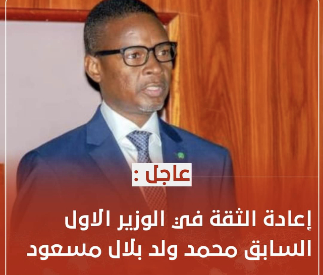 اعلنت مساء يوم أمس الثلاثاء، الرئاسة الموريتانية، أن الحكومة قد قدمت إستقالتها إلى رئيس البلاد. وفي بيان مقتضب، وقالت الرئاسة الموريتانية، إن الرئيس محمد ولد الشيخ الغزواني، قد إستقبل عصر أمس الثلاثاء بالقصر الرئاسي في نواگشوط الوزير الأول محمد ولد بلال مسعود، الذي قدم إستقالة حكومته لرئيس الجمهورية، التي تم تعيينها في غشت 2020 من طرف الرئيس الموريتاني محمد ولد الشيخ الغزواني. وللإشارة فإن رئيس الوزراء السابق محمد ولد بلال حاصل على شهادة الهندسة، وخريج المدرسة العليا للمياه في الجزائر عام 1990