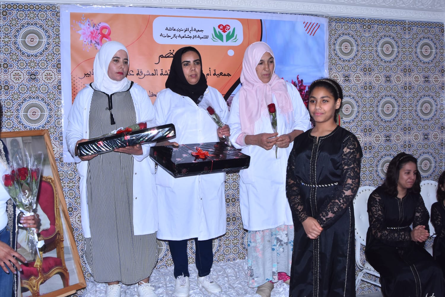 شهد اليوم الأربعاء 30 مارس 2020 مركز جمعية أم المؤمنين عائشة للأطفال المتخلى عنهم بالرحامنة ( شهد ) حفلا بهيجا بمناسبة عيد المرأة 8 مارس ، احتفى من خلاله مكونات هذ المركز وعدد من الحضور بعدد من النساء العاملات بهذا المركز ، اعترافا منهم بمجهوداتهم الكبيرة ، والتي يبذلنها بشكل دوري على مدار السنة