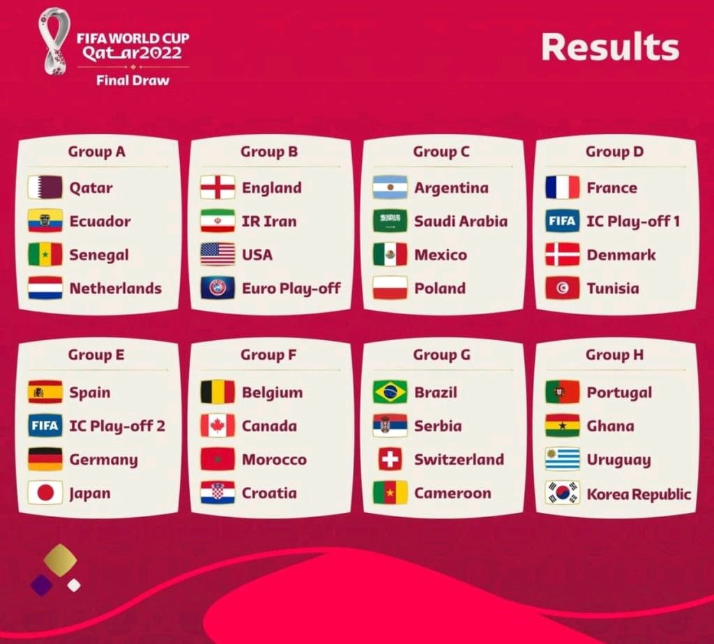 شهدت قرعة كأس العالم 2022، مساء الجمعة، مواجهات نارية، بين أقوى منتخبات العالم، كما "قست" على بعض المنتخبات العربية حيث وضعتها بمواجهات معقدة. وستفتتح قطر صاحبة الضيافة مباريات كأس العالم لكرة القدم 2022، بمواجهة الإكوادور في الدوحة، في المجموعة الأولى، التي ضمت إلى جانبهما هولندا والسنغال. وبرزت "مجموعة الموت" في القرعة، وهي المجموعة الخامسة والتي ضمت إسبانيا وألمانيا واليابان والفائز من كوستاريكا ونيوزيلندا في الملحق المؤجل، الذين يكونون أقوى مجموعة خلال النهائيات. وستلعب البرازيل، بطلة العالم خمس مرات، مع صربيا في مستهل مباريات المجموعة الخامسة التي تضم أيضا كوستاريكا وصربيا. ووقعت السعودية في مجموعة صعبة مع الأرجنتين وبولندا والمكسيك، بينما وقعت تونس مع فرنسا والدنمارك والفائز من ملحق بيرو أو المنتخب الآسيوي. ووقع المغرب إلى جانب كرواتيا وبلجيكا وكندا، في مجموعة أكثر توازنا من السعودية وتونس. وتنطلق منافسات البطولة، التي تستمر شهرا واحدا وتحتضنها 8 ملاعب، في 21 نوفمبر المقبل. وتتضمن البطولة 64 مباراة وستكون المباراة النهائية في استاد لوسيل يوم 18 ديسمبر. مجموعات نهائيات كأس العالم المجموعة الأولى: قطر - هولندا - السنغال - الإكوادور المجموعة الثانية: إنجلترا - الولايات المتحدة - إيران - الفائز من الملحق الأوروبي (ويلز أو أسكتلندا أو أوكرانيا) المجموعة الثالثة: الأرجنتين - المسكيك - بولندا - السعودية المجموعة الرابعة: فرنسا - الدنمارك - تونس - الفائز من ملحق بيرو أو أستراليا أو الإمارات المجموعة الخامسة: إسبانيا - ألمانيا - اليابان - الفائز من ملحق كوستاريكا أو نيوزيلندا المجموعة السادسة: بلجيكا - كرواتيا - المغرب - كندا المجموعة السابعة: البرازيل - سويسرا - صربيا - الكاميرون المجموعة الثامنة: البرتغال - الأوروغواي - كوريا الجنوبية - غانا