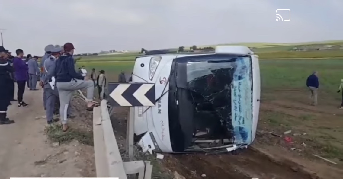 سطات :عدد من الجرحى 2 في حالة خطيرة بسبب إنقلاب حافلة