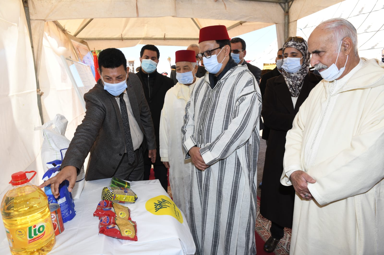 وكما يصل حجم المواد الغذائية الموزعة في إقليم الرحامنة إلى 76 ألف و500 طن من الدقيق، و 30 ألف و 600 طن من السكر، و 38 ألف و 250 لتر من الزيت، و 1912.5 كلغ من الشاي، و 7650 كلغ من العدس، و 7650 كلغ من الشعرية، و 7650 علبة من مركز الطماطم