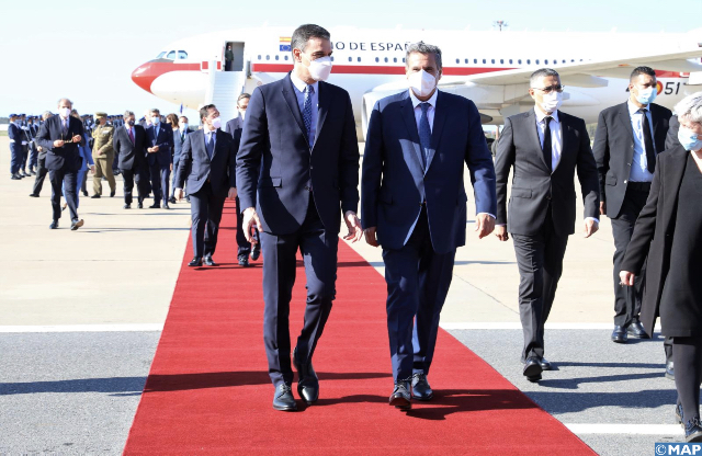 وصل رئيس الحكومة الإسبانية بيدرو سانشيز، اليوم الخميس إلى مطار الرباط سلا، حيث من المنتظر أن يعقد مباحثات مع صاحب الجلالة الملك محمد السادس، قبل تنظيم إفطار على شرفه من طرف جلالة الملك. وقد وجد بيدرو سانشيز، الذي يرافقه في هذه الزيارة، وزير الخارجية خوسيه مانويل ألباريس، في استقباله رئيس الحكومة عزيز أخنوش