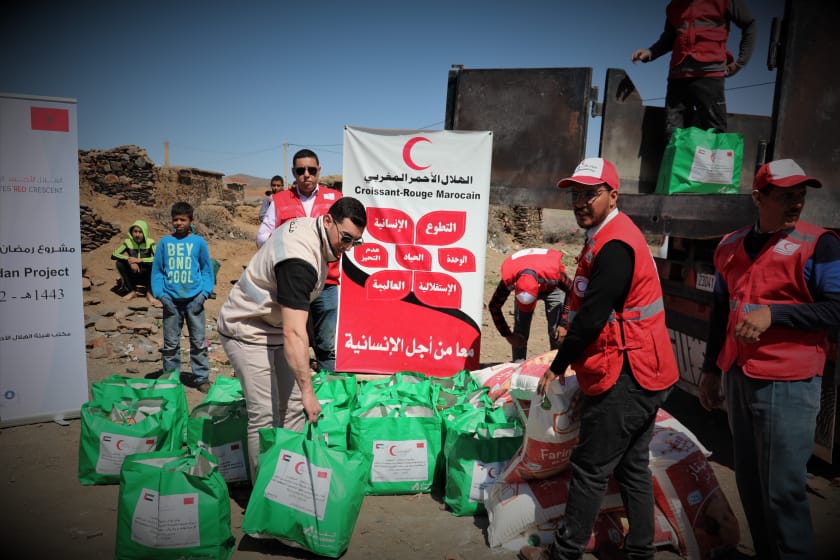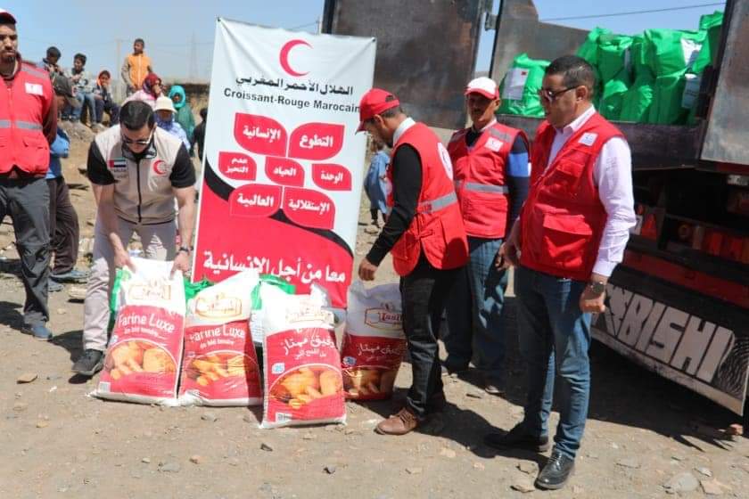 بتنسيق مع الادارة الجهوية والإدارة المركزية للهلال الأحمر المغربي وبدعم من الهلال الأحمر الإماراتي وتحت اشراف السلطات المحلية نظم المكتب الإقليمي للهلال الأحمر المغربي بالرحامنة، بعد زوال يوم الجمعة 22 ابريل 2022، عملية توزيع قفة المواد الغذائية بدوار ولاد طلحة لكبير قيادة الجبيلات دائرة سيدي بوعثمان اقليم الرحامنة،استفادت منها 100 أسرة معوزة