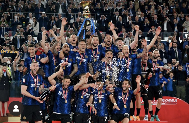 حقق إنتر لقب كأس إيطاليا للمرة الأولى منذ 2011 بفوزه، الأربعاء، في النهائي 4-2 بعد التمديد، على غريمه يوفنتوس على الملعب الأولمبي في روما، مبقيًا على حظوظه بتحقيق الثلاثية المحلية. تقدم إنتر باكرًا عبر نيكولو باريلا (6)، إلا أن السيدة العجوز قلب الطاولة في غضون دقيقتين باكرًا في الشوط الثاني عبر الإسباني ألفارو موراتا (50) والصربي دوشان فلاهوفيتش (52)، قبل أن يفرض نيراتسوري التمديد بركلة جزاء نفذها التركي هاكان تشالهان أوغلو (80). وحسم الكرواتي إيفان بريتشيش الفوز لإنتر في الشوط الإضافي الأول بهدف من ركلة جزاء (98) وآخر من تسديدة رائعة (102)، ليحقق إنتر لقبه الثامن في المسابقة. وكانت هذه المرة الثالثة التي يلتقي فيها الفريقان في نهائي الكأس، وكان الفوز من نصيب يوفنتوس في أول مناسبتين عامي 1959 و1965.