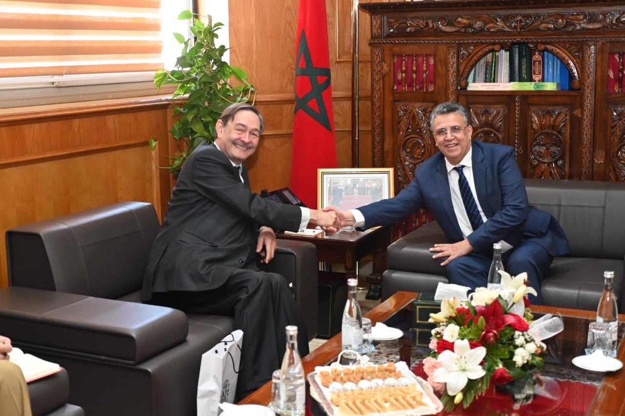 إستقبل وزير العدل المغربي السيدعبد اللطيف وهبي سفير مملكة إسبانيا السيد ريكاردو دييز هوشلايتنر رودريغيز اليوم 25-05-2022بالرباط وهمت هذه المباحثات الثنائية تعزيز علاقات التعاون في المجالات القانونية والقضائية. وفي هذا السياق ، تم عرض الأوضاع العامة ذات الاهتمام المشترك وسبل تطوير إطار التعاون بين المغرب وإسبانيا في المجالين القضائي والحقوقي. وجرت المحادثات أيضا حول دراسة أوجه علاقات التعاون القائم بين البلدين والسبل الكفيلة بتعزيزها وتطويرها وخاصة في مجال العدل.