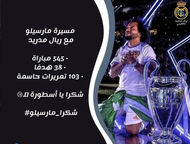 إنتهت رحلة صاحب اليسرى الذهبية في ريال مدريد مارسيلو الذي كان أحسن خلف لكارلوس، حيث ودع فلورينتينو بيريز رئيس نادي ريال مدريد، ظهر اليوم البرازيلي مارسيلو لاعب الفريق المنتهي عقده، مؤكدا أنه أصبح أحد أعظم أساطير الميرنجي بعد كل ما قدمه. وقال بيريز، خلال المؤتمر الوداعي لمارسيلو، اليوم سيكون مليئا بالعواطف، بوداع قائدنا العظيم، الذي أصبح أحد أعظم أساطيرنا، وصاحب أكثر الألقاب في تاريخ ريال مدريد مارسيلو، وصرح قائلاً عزيزي مارسيلو، لقد كنت تلعب بهذا القميص لمدة 16 عاما، وفزت بكل شيء بإجمالي 25 لقبا، وتابع: أنت بلا شك أحد أفضل المدافعين في تاريخ نادينا، وأيضا أحد أفضل اللاعبين في تاريخ كرة القدم العالمية، وأنت لا تتكرر، بسبب أسلوبك والطريقة التي كنت عليها، وأردف: يجب أن تشعر بأنك بشخص متميز بالنسبة لملايين المدريديستا، والكل يشعر بالفخر لما تمثله لريال مدريد، وستكون دائما مرجعا، وأتم حديثه يجب أن تكون فخورا بكل ما حققته في هذا النادي، ريال مدريد الذي حقق 14 بطولة أوروبية، وستكون دائما أحد أفضل ممثلي النادي وسيكون بيتك دائما، وشكرا على كل ما قدمته، وأنت مصدر فخر، جدير بالذكر أن البرازيلي مارسيلو قد انضم إلى ريال مدريد في عام 2007 قادمًا من فلومينينزي في الدوري البرازيلي، ونجح في قيادة الجبهة اليسرى بعد رحيل أسطورته روبرتو كارلوس.