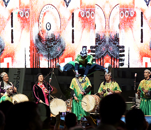 بعد مدينتي الصويرة ومراكش، شهدت ساحة مدخل المركب الرياضي محمد الخامس بالدار البيضاء، المحطة الثالثة لمهرجان كناوة موسيقى العالم، مساء يوم الخميس 16 يونيو 2022، حيث استمتع جمهور الدارالبيضاء وعشاق فن تكناوبت، بإيقاعات فنية من طرف الفنانين، المعلم رشيد حمزاوي وأسماء حمزاوي.