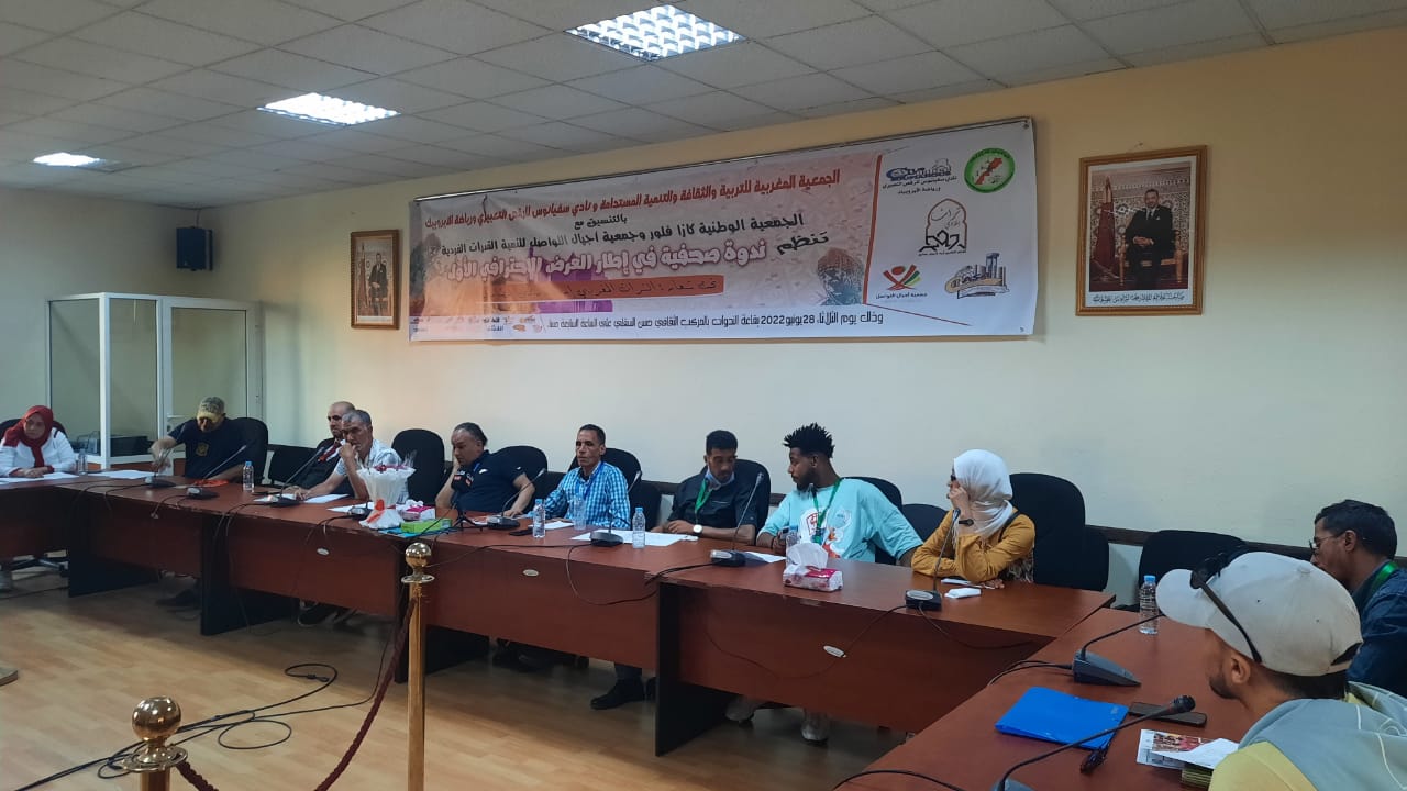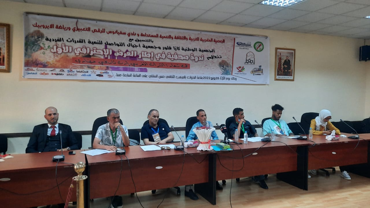 نظمت الجمعية المغربية لتربية والثقافة والتنمية المستدامة ونادي سفيانوس للرقص التعبير ورياضة الأيروبيك بالتنسيق مع الجمعية الوطنية كازا فلور وجمعية أجيال اللتواصل لتنمية القدرات الفردية، ندوة صحفية في إطار العرض الاحترافي الأول، تحت شعار: التراث المغربي إرث تاريخي حضاري، اليوم الثلاثاء 28 يونيو 2022، بقاعة الندوات بالمركب الثقافي حسن السقلي