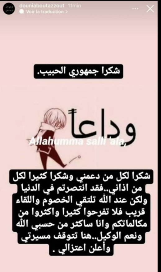 دنيا بوطازوت تخلق الحدث بعد إعلانها الإعتزال
