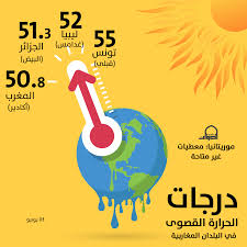 أفادت المديرية العامة للأرصاد الجوية، بأنه من المرتقب تسجيل موجة حر (ما بين 40 و47 درجة) اليوم الاثنين وغدا الثلاثاء بعدد من أقاليم المملكة. وأوضحت المديرية، في نشرة إنذارية من مستوى يقظة برتقالي، أنه سيتم تسجيل درجات حرارة تتراوح ما بين 44 و47 درجة، اليوم الاثنين، بكل من سيدي قاسم وسيدي سليمان والرحامنة ومراكش واليوسفية وشيشاوة وتارودانت وأسا-الزاك والسمارة. وأضافت المديرية، في النشرة ذاتها، أنه سيتم تسجيل درجات حرارة تتراوح ما بين 40 و44 درجة، اليوم، بكل العرائش و وزان وتاوريرت وكرسيف ووجدة-أنجاد، وفاس وتاونات ومولاي يعقوب وتازة والحاجب ومكناس والخميسات والقنيطرة وبني ملال والفقيه بن صالح وخريبكة وخنيفرة وسطات وبرشيد، وبن سليمان، وسيدي بنور وقلعة السراغنة، وزاكورة والرشيدية وطاطا، وكذا داخل أقاليم سلا وتمارة -الصخيرات والجديدة والصويرة وآسفي وطنجة-أصيلة والفحص-أنجرة والناظور وأكادير-إيدا أوتنان، وتزنيت وإنزكان-آيت ملول وشتوكة آيت باها، وطانطان وكلميم وبوجدور وأوسرد ووادي الذهب وسيدي إفني وطرفاية والعيون. وأشارت المديرية في النشرة نفسها، إلى أنه سيتم تسجيل درجات حرارة تتراوح تتاراوح بين 40 و45 درجة غدا الثلاثاء في أقاليم وزان وكرسيف ومكناس وتاونات وفاس ومولاي يعقوب والخميسات وسيدي قاسم وخريبكة وبني ملال والفقيه بن صالح وسيدي بنور وسطات واليوسوفية وشيشاوة وقلعة السراغنة ومراكش والرحامنة والرشيدية وزاكورة وطاطا وتارودانت وأسا-الزاك والسمارة، وكذا داخل أقاليم الصويرة وآسفي وأكادير -إيدا-أوتنان وتيزنيت وإنزكان آيت ملول وشتوركة آيت بها، وطانطان وكلميم وبوجدور وأوسرد ووادي الذهب وسيدي إفني وطرفاية والعيون