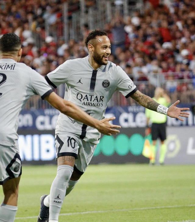 سجل الأرجنتيني ليونيل ميسي هدفين، أحدهما أكروباتي، ومرر البرازيلي نيمار ثلاث كرات حاسمة وأضاف هدفًا ليستهل باريس سان جيرمان حملة الدفاع عن لقبه في الدوري الفرنسي لكرة القدم بفوز كاسح 5-صفر يوم السبت على مضيفه كليرمون، بغياب نجمه كيليان مبابي للإصابة. وواصل نيمار المستويات التي قدمها في الفترة التحضيرية وسجل الهدف الأول (9)، فيما جاء الثاني من توقيع الدولي المغربي أشرف حكيمي (26) والثالث من مدافع آخر البرازيلي ماركينيوس (38)، قبل أن يختتم ميسي بهدف رابع (80) وخامس أكروباتي (86). وبات نادي العاصمة يدخل الموسم وهدفه تحقيق لقب دوري أبطال أوروبا للمرة الأولى في تاريخه بعد أن هيمن على الدوري المحلي وحقق لقبه ثماني مرات في المواسم العشرة الأخيرة. ويأمل في أن يقوده إلى ذلك المدرب الجديد كريستوف غالتييه الذي وصل إلى باريس بعد إقالة الأرجنتيني ماوريسيو بوكيتينو. وظهرت الفترة التمهيدية للموسم بصورة واعدة بالنسبة لعشاق النادي الباريسي، مع الفوز بلقب كأس الأبطال الفرنسية على حساب نانت 4-صفر في أواخر الشهر الفائت في مباراة سجل فيها نيمار هدفين وميسي هدفًا.