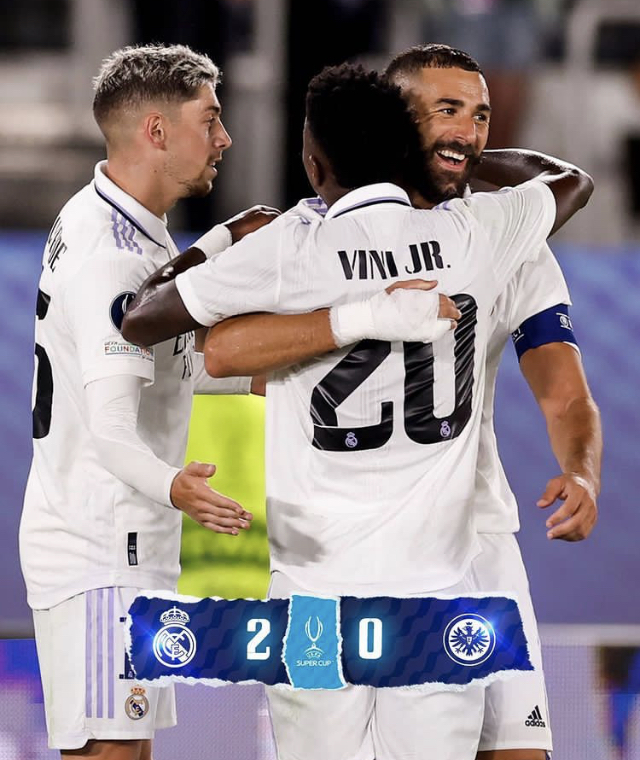 حقق نادي ريال مدريد الفوز بكأس السوبر الاوروبي بعد تغلبه على نادي اينتراخت فرانكفورت في النهائي. وبهذا اللقب يعادل ريال مدريد كل من برشلونة و ميلان في عدد بطولات السوبر الاوروبي بخمسة ألقاب