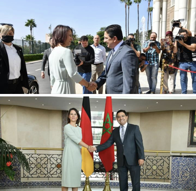 اتفق المغرب وألمانيا على وضع آلية للحوار الاستراتيجي واجتماع اللجنة الاقتصادية المشتركة. ذلك ما أكده ناصر بوريطة وزير الشؤون الخارجية والتعاون الإفريقي والمغاربة المقيمين بالخارج، الذي أكد على فتح صفحة جديدة في العلاقات مع ألمانيا قائمة على الوضوح والثقة والمصالح المشتركة. واعتبر في المؤتمر الصحفي الذي عقده، اليوم الخميس 25 غشت، عقب مباحثات أجراها بالرباط مع وزيرة الشؤون الخارجية الألمانية، أنالينا بيربوك، أن العلاقات المغربية - الألمانية دخلت في مرحلة جديدة منذ رسالة الرئيس شتاينماير إلى جلالة الملك محمد السادس في دجنبر الماضي. وذكر بخطاب جلاله الملك الأخير الذي أشار فيه إلى ألمانيا باعتبارها شريكا قويا ورغبة المغرب في فتح صفحة جديدة في تلك العلاقات. وأكد على أن البلدين يفتحان صفحة جديدة في العلاقات مبنية على الوضوح والاحترام المتبادل والثقة و التعاون والمصالح المشتركة. وشدد على أن زيارة الوزيرة الألمانية ستعطي دفعة قوية للعلاقات الثنائية، مشيرا إلى ما تم الاتفاق عليه في مجال الحوار الاستراتيجي و التعاون الاقتصادي. وأوضح أنه تم الاتفاق على وضع آلية للحوار الاستراتيجي بين البلدين، وهو ما يؤشر على المكانة التي أصبحت لألمانيا لدر المغرب، حيث سيتم عقد اجتماع كل عامين على مستوى وزيري خارجية البلدين من أجل التنسيق والتعاون بينهما، مضيفا أنه تم الاتفاق على عقد اللجنة الاقتصادية المشتركة. واعتبر أنه يمكن البناء على ما تم ترسيخه من إيجابيات في العلاقات الثنائية في السابق بهدف تطويرها مشيرا إلى التعاون في مجال الهيدروجين الأخضر وقضايا المرأة وتعزيز دورها في المجتمع والتعاون المغربي- الألماني اتجاه القارة الأفريقية وتطوير الاستثمارات والتبادل التجاري. وأكد على أن المباحثات مع الوزيرة تناولت القضايا الإقليمية مثل الساحل و والشرق الأوسط، والقضايا ذات الصلة بالصحراء المغربية، مثمنا الدور والمواقف الألماني. وأشار إلى تقاسم وجهات النظر بين الجانبين حول العديد من القضايا سواء تعلق الأمر بمالي أو ليبيا أو أوكرانيا. وشدد على أن الزيارة التي تقوم بها الوزيرة ستفتح الباب أمام زيارات وزارية متبادلة ذات طابع قطاعي، بشكل خاص، لها علاقة بالطاقة والفلاحة والاستثمار. وثمن دور ألمانيا في الدفع بالعلاقات المغربية والاتحاد الأوروبي، مشددا على أنه سيتم تعميق حول هذا الموضوع، من أجل خلق علاقات بين الاتحاد الأوروبي وجنوب البحر الأبيض المتوسط قائمة على حسن الجوار و المنفعة والمصالح المشتركة.