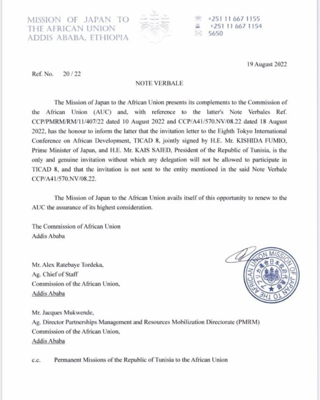فضحت مذكرة كتابية رسمية صادرة عن اليابان في 19 غشت 2022، مزاعم وزارة الخارجية التونسية بشأن توجيه رئيس المفوضية الإفريقية، دعوة فردية مباشرة للجبهة الانفصالية المزعومة من أجل حضور منتدى تيكاد-8، المنعقد بتونس. وبحسب ما ورد في المذكرة ، فإنه تم الاتفاق على أن تقتصر المشاركة على الدول التي تلقت دعوة موقعة من قبل كل من رئيس الوزراء الياباني كيشيد فوميو والرئيس التونسي قيس سعيّد فقط ولن يسمح لأي وفد بالمشاركة في المؤتمر دون التوفر على دعوة تحمل التوقيعين معا. وأضافت المذكرة الصادرة عن بعثة اليابان، أن الدعوة لا ينبغي أن ترسل إلى الكيان المشار إليه في المذكرة الشفوية رقم CCP/A41/570.NV/08.22& الصادرة في 10 غشت الماضي، في إشارة واضحة وصريحة من اليابان لجبهة البوليساريو الانفصالية. وكانت وزارة الخارجية والتعاون الدولي المغربية، قد أكدت بأنه تم توجيه 50 دعوة إلى الدول الإفريقية التي تقيم علاقات دبلوماسية مع اليابان، ولذلك لم يكن من حق تونس سن مسطرة خاصة بتوجيه الدعوات بشكل أحادي الجانب ومواز وخاص بالكيان الانفصالي، وفي تعارض مع الإرادة الصريحة للشريك الياباني ،وشدد الناطق باسم وزارة الشؤون الخارجية والتعاون الإفريقي والمغاربة المقيمين بالخارج على أن البيان الصادر عن تونس ينهج نفس التأويل فيما يتعلق بالموقف الإفريقي، الذي ظل على الدوام قائما على المشاركة الشاملة للدول الإفريقية، وليس أعضاء الاتحاد الإفريقي، وهو يستند إلى قرار قمة الاتحاد الإفريقي رقم 762، الذي يوضح أن إطار عمل تيكاد ليس مفتوحا في وجه جميع أعضاء الاتحاد الإفريقي، وأن صيغة المشاركة مؤطرة بنفس القرار ومن خلال ترتيبات مع الشريك، مضيفا أنه أنه حتى قرار المجلس التنفيذي الصادر في يوليوز 2022 بلوزاكا اكتفى بـ تشجيع المشاركة الشاملة مع اشتراطه الامتثال لقرارات الاتحاد الإفريقي ذات الصلة، وهي في هذه الحالة القرار 762. وكانت زارة الشؤون الخارجية والهجرة والتونسيين بالخارج، قد أصدرت مساء أمس بلاغا عبرت فيه عن استغرابها مما وصفته بـ التحامل غير المقبول عليها. وقال البلاغ إن تونس حافظت على حيادها التام في قضية الصحراء المغربية، التزاما بالشرعية الدولية، وهو موقف ثابت لن يتغير إلى أن تجد الأطراف المعنية حلاّ سلميا يرتضيه الجميع. وأشار إلى أن تونستَلتزم بقرارات الأمم المتحدة وبقرارات الاتحاد الإفريقي، مبررة استقبال بالقول إن الاتحاد الإفريقي قرر في مرحلة أولى، بصفته مشاركا رئيسيا في تنظيم ندوة طوكيو الدولية، بتعميم مذكّرة يدعو فيها كافة أعضاء الاتحاد الإفريقي للمشاركة في فعاليات قمة تيكاد-8 بتونس.وأضافت الخارجية التونسية: كما وجه رئيس المفوضية الإفريقية، في مرحلة ثانية دعوة فردية مباشرة لما وصفتها بـ الجمهورية لحضور القمة ،وذكر البلاغ أن الدعوتان جاءت تنفيذا لقرارات المجلس التنفيذي للاتحاد الإفريقي في اجتماعه المنعقد بلوساكا زامبيا، يومي 14 و15 يوليوز 2022، بحضور الوفد المغربي. واعتبرت تونس، وحسب المصدر ذاته أنه لا وجود لأي تبرير منطقي للبيان المغربي، لا سيما وأنّ تونس احترمت جميع الإجراءات الترتيبية المتعلقة باحتضان القمة وفقا للمرجعيات القانونية الإفريقية ذات الصلة بتنظيم القمم والمؤتمرات واجتماعات الشراكات ،ورفضت تونس ما تضمنه بيان وزارة الشؤون الخارجية المغربية من عبارات قالت إنها تتهمها باتخاذ موقف عدواني تجاه المغرب ويضر بالمصالح المغربية.