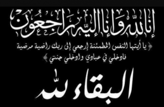 يَا أَيَّتُهَا النَّفْسُ الْمُطْمَئِنَّةُ ارْجِعِي إِلَى رَبِّكِ رَاضِيَةً مَرْضِيَّةً فَادْخُلِي فِي عِبَادِي وَادْخُلِي جَنَّتِي ببالغ الحزن والأسى تلقينا نبأ وفاة المشمولة برحمة الله تعالى والدة أخينا سعيد ورصاص ومبارك ومحمد وذالك يوم الثلاثاء 13-09-2022وبهذه المناسبة الأليمة يتقدم السيد مصطفى مايتي نيابةً عن جميع أفراد أسرته وأصدقائه بأحر التعازي له ولباقي أفراد عائلته الصغيرة والكبيرةراجين من العلي القدير أن يتغمد الفقيدة بواسع رحمته، وأن يجعل مثواها مع النبيئين والصديقين والشهداء والصالحين، ويرزق ذويهاالصبر والسلوان وإنا لله وإنا إليه راجعون.