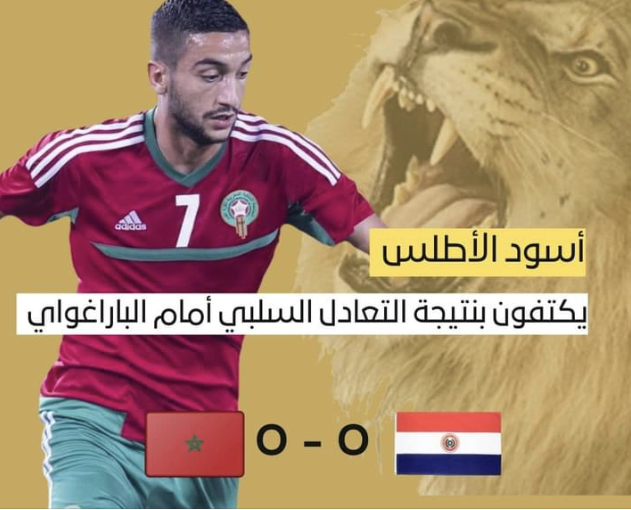تعادل المنتخب المغربي لكرة القدم بصفر لمثله، في المباراة الودية التي جمعته مساء اليوم بنظيره منتخب الباراغواي، بمدينة اشبيلية الإسبانية، في إطار التحضير لنهائيات كأس العالم 2022. و عبر عدد من أنصار المنتخب الوطني ، عن عدم رضاهم عن أداء العناصر الوطني، الذي وصفوه بالباهت. وحسب متابعين، فإن المنتخب افتقد للنجاعة الهجومية والسرعة في التحول من الدفاع إلى الهجوم، ما جعله يجد صعوبة في صناعة العديد من الفرص السانحة للتسجيل.
