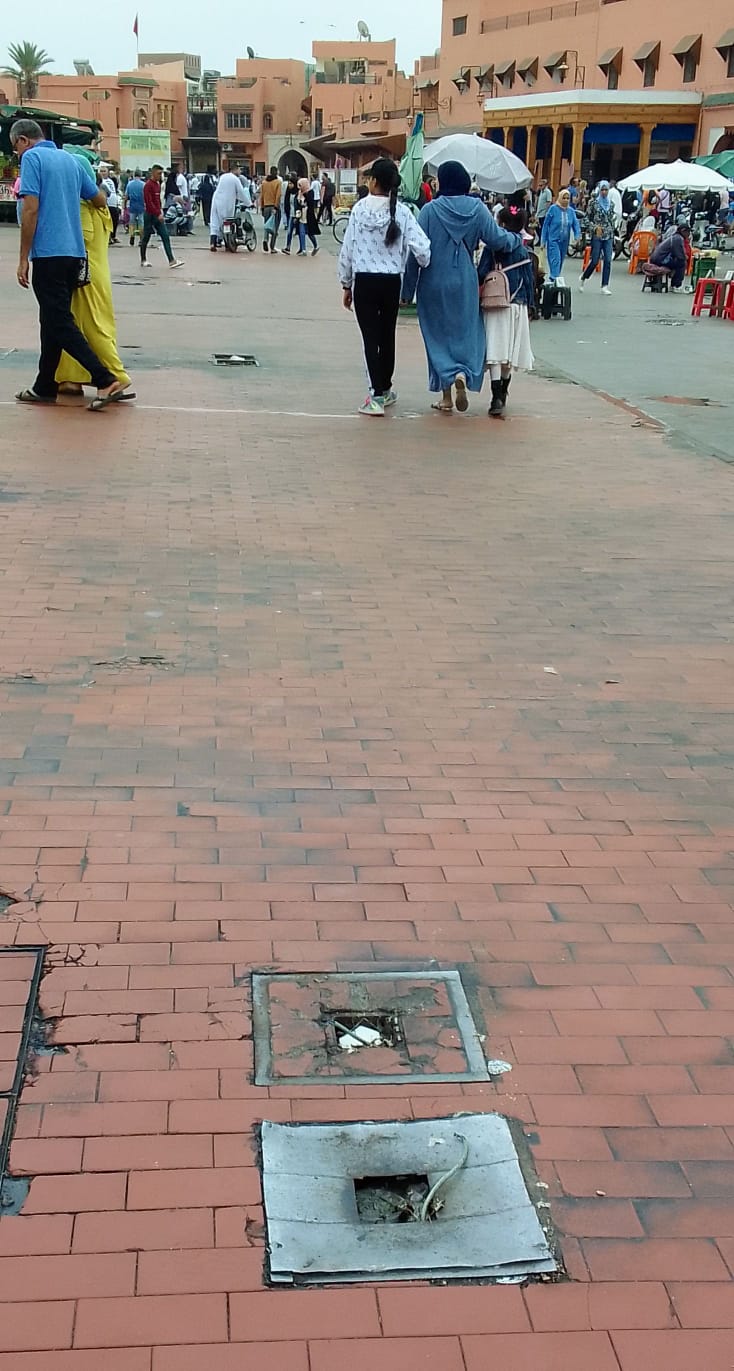 في غياب المسؤولية و توافد اجناس مختلفة من جميع اقطاب العالم لساحة جامع الفناء، تعرف في الاونة الاخيرة اكتظاظ وتراكم الازبال في جميع الازقة، وامام محلات الباعة ووسط الساحة العالمية، يوجد قارورات مغلقة ممايجعل تجمع المياه العدمة وانبعات روائح كريهة تزكم انف الزوار والخطير في ذالك الاسلاك الكهربائية التي يضيء بها اصحاب جلسات المأكولات ليلا اماكنهم هي اشد الاخطار نهارا وهذا وقد سبق وان سعقت هده الاسلاك الخارجة من الارض بدون غطاء ارواح ابرياء وعند حضور الدولية للاعلام طرحت اسئلة لذى بعض الزوار وجمعيات المجتمع المدني، كانت الاجوبة، اننا نندد بإيجاد حل وطريقة لهده المخاطر حتى يبقى اسم ساحة جامع الفناء العالمية له دلالة عند اي زائر، والمسؤولية الملقات على عاتق مجلس مراكش المدينة لم تكن بالملموس واضافت بعض الجمعيات من العيب والعار ان نرى هذه الساحة العالمية بتلك الصورة التي عليها الان لان المسؤولية غائبة تماما.