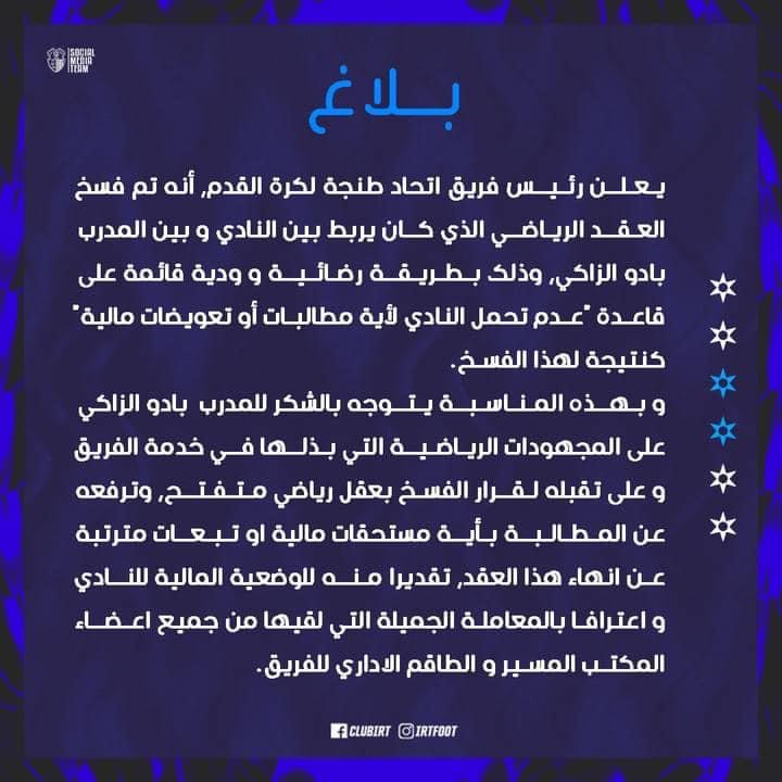 اتحاد طنجة ينفصل عن مدربه بادو الزاكي ويشكره على حسن معاملته