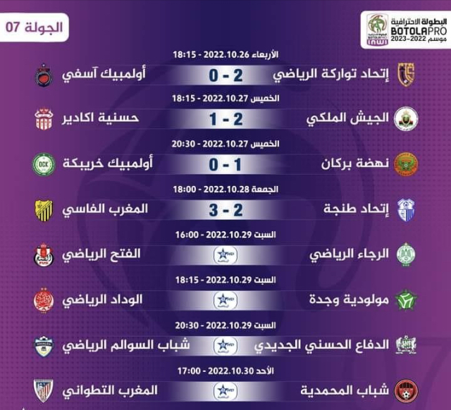 عاد فريق المغرب الفاسي بفوز مستحق من طنجة ،عقب فوزه على اتحادها بنتيجة (3 2)، في مباراة تندرج ضمن الأسبوع السابع من منافسات البطولة الاحترافية. وتمكن الضيوف من افتتاح التسجيل عن طريق طارق أستاتي، قبل أن يعدل الكفة لاتحاد طنجة اللاعب عبد اللطيف أخريف، في آخر دقائق الشوط الثاني. ونجح المغرب الفاسي في تسجيل هدف التقدم مجددا عن طريق أيوب الودراسي، ليتدارك الطنجاويين مجددا عن طريق فوزي عبد المطلب. وتسيدت غرفة الفار مشهد هذه المباراة، بعدما ألغت هدفا لاتحاد طنجة، مقابل احتسابها لضربة جزاء لصالح الماص، ترجمها محمد الفقيه إلى هدف، مانحا فريقه الفوز. ويعد هذا الفوز هو الثاني للمغرب الفاسي هذا الموسم، إذ ارتقى للمرتبة 7 برصيد 9 نقاط، فيما تعمقت جراح فارس البوغاز في المركز الأخير بنقطة واحدة، دون أي انتصار،والجمهور الطنجاوي لم يكن يتصور هذه البداية الغير مقبولة لفريق مثل طنجة ،التي تسارع الزمن لأتمام اشغال الملعب الذي ستصل سعته إلى 65.000 مقعد