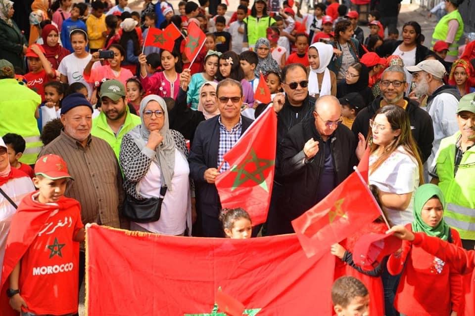 تخليدا لحدث المسيرة الخضراء الخالدة و تكريما لكل من شاركوا في تلك المسيرة السلمية التي طردت المستعمر من الأقاليم الجنوبية ،شارك رئيس مقاطعة عين الشق السيد محمد شفيق إبن كيران ،اليوم الأحد 6 نونبر 2022، في مسيرة رمزية رفقة مكونات من المجتمع المدني متكونًا من كافة الأجيال من أطفال بنين وبنات ونساء ورجال وشيوخ ، استحضروا من خلالها تضحيات كل من شارك في المسيرة الخضراء الأصلية معجزة المغرب الحديث ، وقد رفع المشاركون الأعلام الوطنية والمصاحف ، مرددين شعارات وأغاني وطنية خالدة ورافعين أسمى عبارات الوفاء والولاء لجلالة الملك محمد السادس نصره الله ، مع الترحم على مبدع المسيرة الخضراء المظفرة جلالة الملك المغفور له الحسن الثاني طيب الله ثراه .