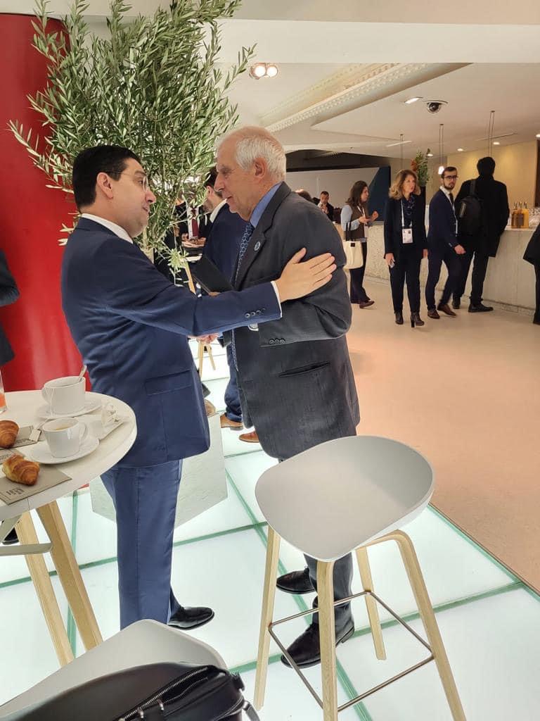 يمثل وزير الشؤون الخارجية والتعاون الإفريقي والمغاربة المقيمين بالخارج السيد ناصر بوريطة المملكة المغربية، بتعليمات سامية من صاحب الجلالة الملك محمد السادس، نصره الله، في الدورة الخامسة لمنتدى باريس حول السلام، الذي ينعقد يومي 11 و12 نونبر 2022 بالعاصمة الفرنسية، وعلى هامش هذه النسخة الخامسة ،تباحث السيد ناصر بوريطة، اليوم بباريس، مع وزير الخارجية والمغتربين بدولة فلسطين، السيد رياض المالكي، وكذالك اجرى مباحثات مع وزيرة الشؤون الخارجية بمملكة النرويج، السيدة أنيكين هويتفيلدت، كما تباحث معالي الوزير مع الممثل السامي للاتحاد الأوروبي للشؤون الخارجية والسياسة الأمنية، ونائب رئيس المفوضية الأوروبية، السيد جوزيب بوريل.