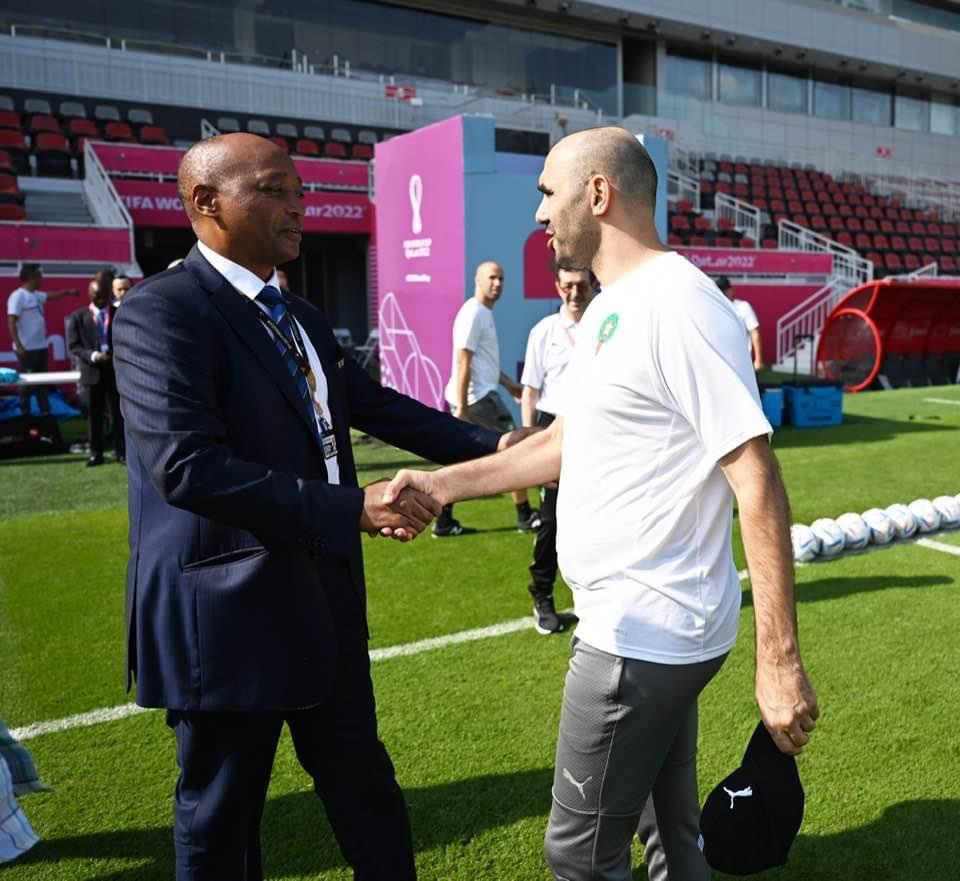 شهدت الحصة التدريبية للمنتخب الوطني المغربي لكرة القدم، الاثنين 21 نونبر 2022، حضور باتريس موتسيبي، رئيس الاتحاد الإفريقي وفوزي لقجع، رئيس جامعة الكرة، من أجل دعم وتحفيز العناصر الوطنية لحقيق نتيجة إيجابية في أولى مبارياتها في نهائيات كأس العالم، الأربعاء 23 نونبر 2022، أمام المنتخب الكرواتي. وكان الاتحاد الإفريقي لكرة القدم، أعلن، أخيرا، أن رئيسه باتريس موتسيبي، قرر القيام بزيارات لجميع المنتخبات الـ5 المشاركة في نهائيات كأس العالم، من أجل تحفيزها ودعمها للذهاب بعيدا في هذه التظاهرة العالمية. وكان باتريس موتسيبي، قال، في ندوة صحفية، الثلاثاء 16 مارس 2021، في مدينة جوهانسبورغ بجنوب إفريقيا، إنه مؤمن بأن أحد منتخبات القارة الإفريقية سيفوز، في المستقبل القريب، بكأس العالم، مبرزا: لكي يحترمك العالم، يجب أن تحقق أعلى مستويات النجاح، لهذا علينا الفوز بكأس العالم حتى نحظى بالاحترام الذي نستحق .بالمناسبة فنجاح قطر في تنظيم كأس العالم لهذه الطريقة التي جعلت العالم منبهراً لما شاهده من تكنولوجيا متقدمة حتى على بعض الدول الأوروبية والقارات الأربع ،جعل العرب يفتخرون بانتمائهم للعروبة