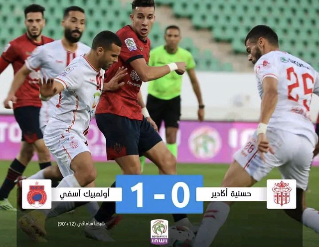 يواصل فريق حسنية أكادير النتائج الغير المرضية، بعدما انهزم بميدانه أمام أولمبيك آسفي بهدف لصفر في المباراة التي جمعت بين الفريقين مساء اليوم السبت برسم الدورة الحادية عشرة من منافسات البطولة الإحترافية. و تأتي هذه الهزيمة بعد التعادل السابق أمام الدفاع الجديدي برسم الدورة العاشرة من البطولة الاحترافية. وبهذا التعادل بقى رصيد حسنية أكادير جامدا في 12 نقطة، أما أولمبيك آسفي فرفع رصيده إلى 19 نقطة. و مع هذه الهزيمة يلزم على الإدارة التقنية لفريق حسنية أكادير لكرة القدم إعادة النظر في كتيبة الفريق الاكاديري لإرضاء الجمهور السوسي التواق إلى انتصارات الفريق.