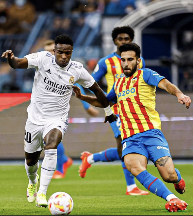 بلغ ريال مدريد نهائي الكأس السوبر الاسبانية لكرة القدم بفوزه الأربعاء بركلات الترجيح على فالنسيا 4-3 بعد نهاية الوقتين الأصلي والإضافي بالتعادل 1-1، على ملعب الملك فهد في العاصمة السعودية الرياض. ١١ كانون الثاني يناير ٢٠٢٣ ٢٣:٠٧ ريال مدريد وتقدم النادي الملكي من ركلة جزاء للفرنسي كريم بنزيمة (39) وعادل البرازيلي سامويل لينو بعد ثوان من انطلاق الشوط الثاني (46). ونجح لاعبو الملكي في التسديدات الاربع جميعها في ركلات الترجيح، فيما تصدى الحارس البلجيكي تيبو كورتوا الذي اختير رجل المباراة للركلة الخامسة بعد أن أهدر فالنسيا المحاولة الثانية أيضًا. ويلعب النادي الملكي في النهائي الأحد ضد برشلونة أو ريال بيتيس اللذين يلتقيان الخميس في نصف النهائي الثاني.