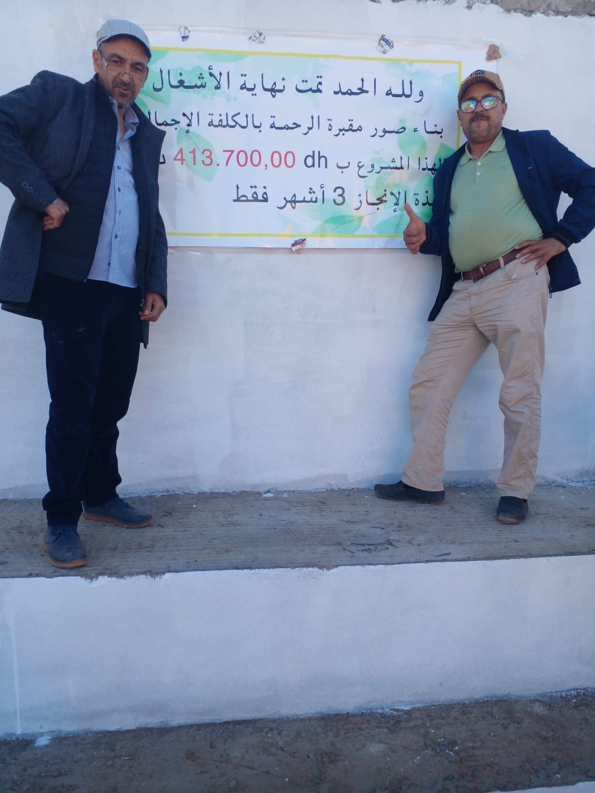 يقول الله عز وجل في كتابه (مثل المومنين في توادهم وتراحمهم وتعاطفهم كمثل الجسد الواحد؛ اذا إشتكى منه عضو تداعى له سائر الجسد بالسهر والحمى ) رواه مسلم وأحمد)،وهذا ما جسدته ملحمة بناء سور (مقبرة الرحمة ) وتشمل تسعة دواوير :أزريب - أيت همو - امزيلن أيت الحسين - دار الشيخ بوميا - الحفرت تالميط - تالمرست، هذه المفخرة هي عربون التعاون بين كل من ينتمي الى هذه الدواوير ولكل محسن ساهم في بناء هذا الجدار بهذه الكيفية الجميلة التي ستحافظ على كرامة الموتى المدفونين فيها والذين سيدفنون بعد الذين سبقوهم ، وهي التي كانت قبل هذا الانجاز مكانًا متوحشًا ومستغلًا من طرف الرعاة الرحل بمئات الإبل والأغنام يعبثون بكل شيء ولا يحترمون الأحياء فما بالك بقبور الموتى ، وهناك حيوانات مثل الكلاب والخنازير تشكل خطرًا كبيرًا على رفات الموتى ،وبفضل الله وهذا التلاحم تمكنت هذه الجمعية الاستثنائية لهذا الغرض بالذات من جمع تبرعات من ساكنة هذه الدواوير والمحسنين من داخل الوطن المنتمين وغير المنتمين للمنطقة ومن خارج الوطن ،لكل هؤلاء نخبرهم ان المسؤولين على هذا المشروع تمكنوا من اتمامه بنسبة 95 بالمئة ،ولإتاحة الفرصة للمسؤولين عليه لأخذ نفس جديد و البحث عن ماتبقى من مصاريف لاتمامه ،تم تقييم مصاريف هذه الشهور التي لم تتعدى 3 شهور شيد فيها سور بمواصفات عالية الجودة والدقة في التصميم ،على مساحة خمسة هكتارات ،هناك من تبرع بالارض في سبيل الله ،وسيجدون ذلك في ميزان حسناتهم ، المبالغ التي صرفت على هذا السور تقدر ب 413700 درهم ، وفي ختام هذا الانجاز الذي يعد مفخرة لساكنة المنطقة ،نود ان نقدم الشكر الجزيل لكل من ساهم فيه وخاصةً من ضحوا باوقات عملهم وساهموا بأموالهم تشجيعًا لغيرهم ولرغبتهم في انجاح هذا العمل الجبار الذي كان تحديًا ونجحوا في اجتيازه ، الأسماء كثيرة وتفادياً لأي حرج الجميع بدون استثناء كانوا في الموعد من مسؤولين جماعيين ورجال الاعمال وتجار و من لهم الغيرة على حرمة الموتى ،ونختم بقول الله تعالى في سورة المزمل: {وَمَا تُقَدِّمُوا لِأَنفُسِكُم مِّنْ خَيْرٍ تَجِدُوهُ عِندَ اللَّهِ هُوَ خَيْرًا وَأَعْظَمَ أَجْرًا وَاسْتَغْفِرُوا اللَّهَ إِنَّ اللَّهَ غَفُورٌ رَّحِيمٌ}.