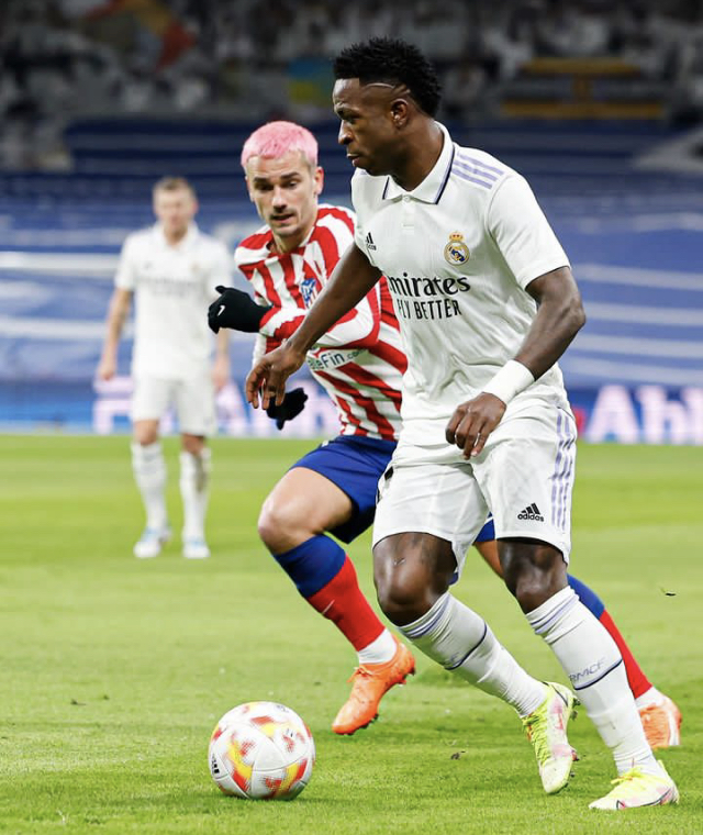 حقق الفريق الأول لكرة القدم بنادي ريال مدريد فوزًا غاليًا على أتلتيكو مدريد، بثلاثة أهداف مقابل هدف، في المباراة التي اقيمت بينهما مساء الخميس، في ربع نهائي كأس ملك إسبانيا. وانتهى الوقت الأصلي للمباراة بالتعادل الإيجابي 1-1، ليلعب الفريقين وقت إضافي لمدة نصف ساعة على شوطين. أحرز ألفارو موراتا، هدف أتلتيكو مدريد، في الدقيقة 19 من الشوط الأول بعدما تلقى كرة عرضية من جهة اليمين ليقابلها بتسديدة قوية من داخل منطقة الجزاء لتسكن الشباك. وأحرز رودريجو، هدف التعادل لريال مدريد، في الدقيقة 79، بعدما تلقى تمريرة من مودريتش، ليراوغ مدافعي اتلتيكو مدريد، ويسدد الكرة في الشباك. وأضاف كريم بنزيما، الهدف الثاني للريال في الدقيقة 104، بعدما لعب أسينسيو، كرة عرضية من جهة اليمين مرت من تحت أقدام فينيسوس جونيور ووصلت إلى بنزيما يسار منطقة الجزاء فسدد كرة أضية سكنت أسسفل يمين المرمى. وفي الدقيقة الأخيرة من الوقت الإضافي احرز فينسيوس جونيور، الهدف الثالث للنادي الملكي. ولعب اتلتيكو مدريد بعشرة لاعبين من الدقيقة 99 بعد طرد ستيفان سافيتش، بعد إعاقته للاعب إدوارد كامافينجا من جهة اليسار. وبتلك النتيجة تأهل ريال مدريد إلى نصف نهائي كأس ملك إسبانيا، ليلتحق بـ برشلونة وأوساسونا وأتلتيك بيلباو في نصف نهائي كأس ملك إسبانيا.