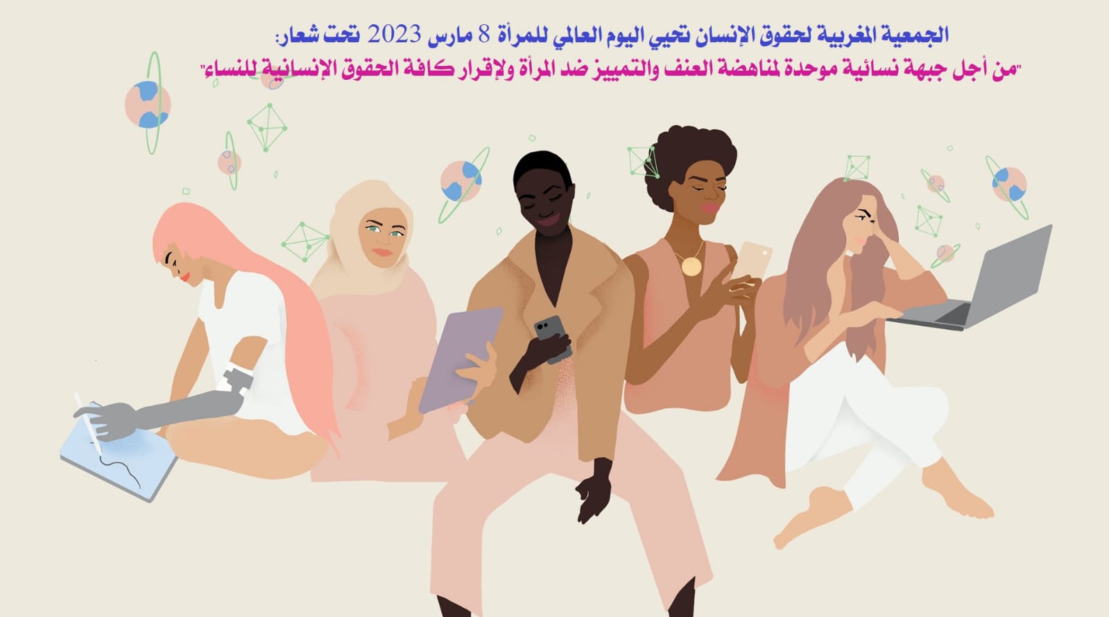تخلد الجمعية المغربية لحقوق الانسان اليوم العالمي للمرأة 8 مارس 2023، تحت شعار" من أجل جبهة نسائية موحدة لمناهضة العنف والتمييز ضد المرأة ولإقرار كافة الحقوق الإنسانية للنساء" ذلك لما للنضال النسائي الوحدوي في المرحلة الراهنة من أهمية قصوى لمواجهة التدهور الخطير الذي طال حقوق النساء عبر العالم، خاصة في سياق دولي وإقليمي يتسم بتمدد نظام الهيمنة الرأسمالية والنزعة العدوانية للامبريالية عبر إشعال فتيل الحرب في العديد من بقاع العالم، ومواصلة الكيان الصهيوني عدوانه الهمجي ضد الشعب الفلسطيني الاعزل، اضافة الى ما خلفته الكوارث الطبيعية كالزلزال الذي ضرب تركيا وسوريا، من خسائر في الأرواح ومآسي إنسانية كان للنساء فيها النصيب الأوفر . وهو الوضع المرشح للمزيد من التدهور في ظل المخاطر التي باتت تهدد العديد من المكاسب التي انتزعتها الشعوب والنساء كجزء منها، بكفاحاتها وتضحياتها.