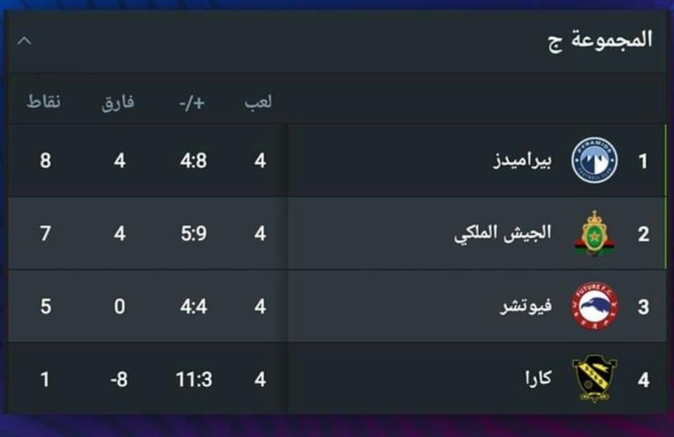 / تلقى الجيش الملكي أمام مضيفه فيوتشر المصري اول هزيمة له بهدفين لصفر ، في المباراة التي جمعتهما على أرضية ملعب السلام، لحساب الجولة الرابعة من دور مجموعات كأس الكونفدرالية الأفريقية. استغل فيوتشر الدقائق الأولى من المباراة بالشكل الأمثل، حيث ترجم ركلة الجزاء التي منحها له الحكم الجنوب أفريقي توم أبونجيلي إلى هدف في الدقيقة الـ10 عن طريق مروان محسن. وحاول بعدها الجيش الملكي العودة في النتيجة، والدخول قي أجواء المباراة عبر خلق العديد من الفرص التي افتقدت إلى اللمسة الأخيرة، ومع بداية الشوط الثاني ،كان مدرب الجيش ينتظر تسجيل هدف التعادل ،كان عكس ذلك ،إذ تلقى الجيش الملكي هدفاً ثانياً عن طريق لاعبه حاتم الصوابي بالخطأ في مرماه، في الدقيقة الـ50، وبهذه النتيجة يرفع فيوتشر رصيده إلى 5 نقاط في المركز الثالث، فيما تجمد عداد الجيش عند النقطة الـ7 في المركز الثاني.