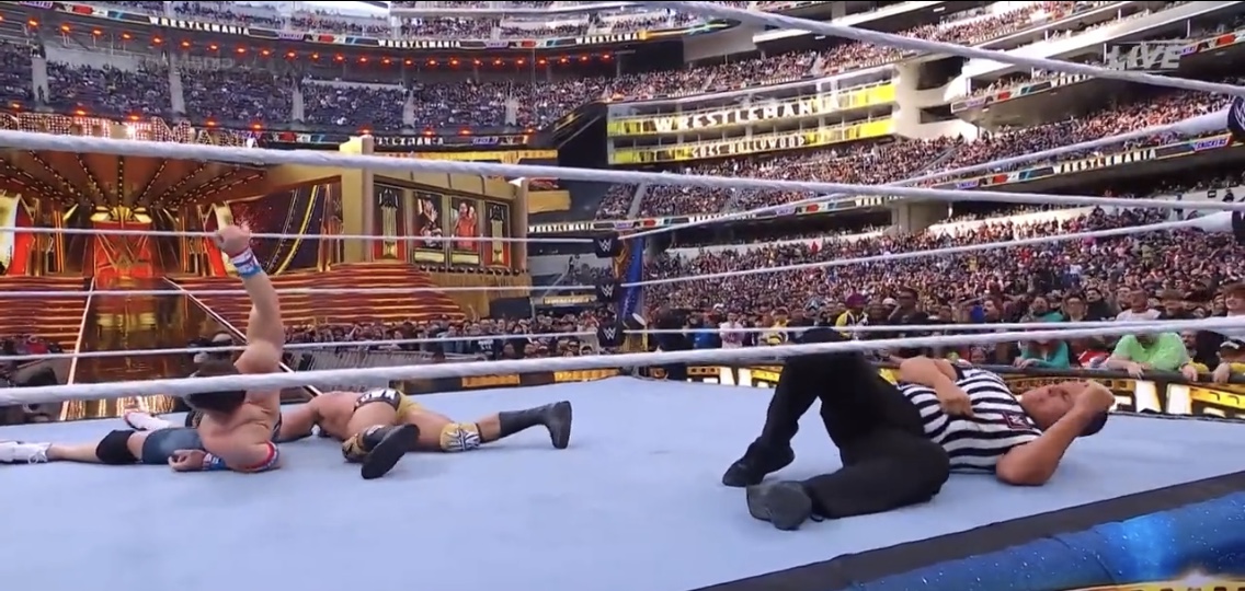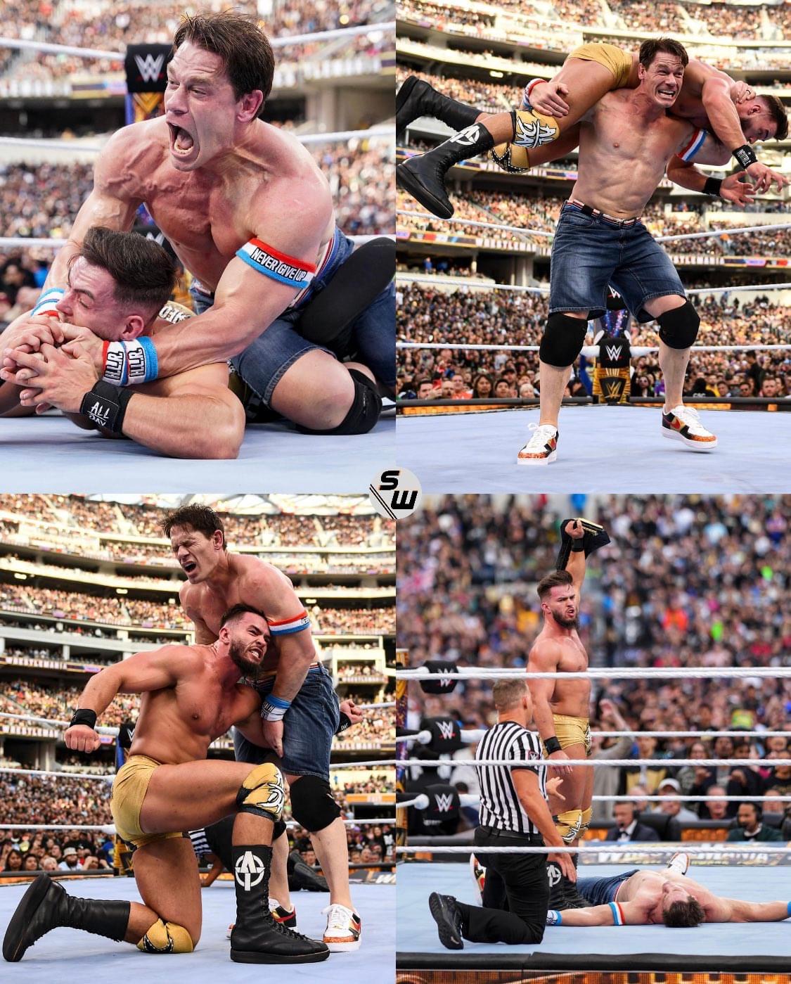 انتشر مقطع فيديو لأسطورة مصارعة المحترفين جون سينا قبل تسديد ضربة لمنافسه أوستن ثيري خلال منافسات الليلة الأولى من ريسلمانيا 39 وكأنه يودع الجماهير. وتمكن أوستن ثيري من الفوز على سينا، حيث سدد له ضربة قوية، مستغلًا سقوط الحكم أرضًا وعدم رؤيته لما يحدث، ومن ثم نجح ثيري في إخضاع سينا وتثبيت أكتافه والفوز بالمباراة ليحتفظ بلقب بطل أمريكا. وكان سينا قادرا على التغلب على ثيري لولا خطأ الحكم وعدم انتباهه، لكن الأمر الأكثر أهمية للجماهير كان إشارة جون سينا التي أثارت جدلا،بحسب جيف مي سبورتس فإن سينا يبدو وكأنه كان يودع الجمهور، حيث تركت تلك الإشارة حزنا بين محبيه الذين حضروا العرض ومن شاهدوه عبر الشاشات. وتكهن كثيرون أن سينا خاض آخر معاركه بالفعل في wwe حيث يعمل حاليا بدوام جزئي فقط لانشغاله بالسينما،ولم يعلن جون سينا رسميًا عن اعتزاله، لكن نظرًا لجدول أعماله المزدحم في هوليوود، سيتعين على محبيه أن يتصالحوا مع عدم رؤيته في الحلبة لفترات طويلة،ويأمل المخضرم في تحطيم الرقم القياسي لريك فلير والفوز ببطولة العالم السابعة عشرة في مسيرته قبل الاعتزال بشكل كامل، لكن يبدو أن الأمر صعب بسبب غيابه لفترات طويلة عن المنافسات.