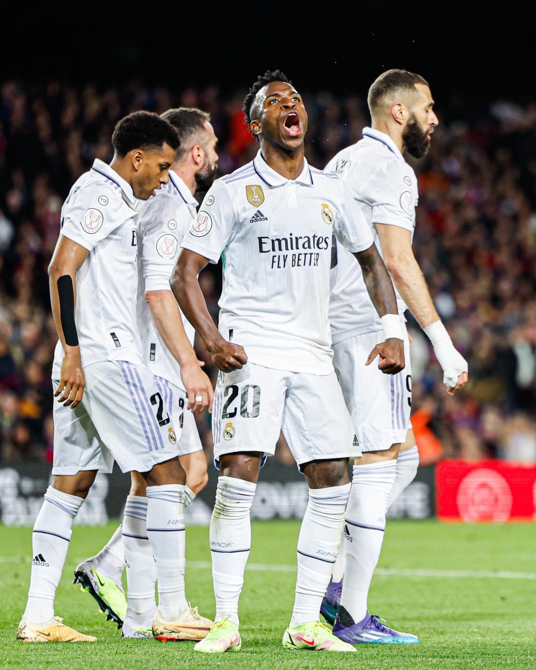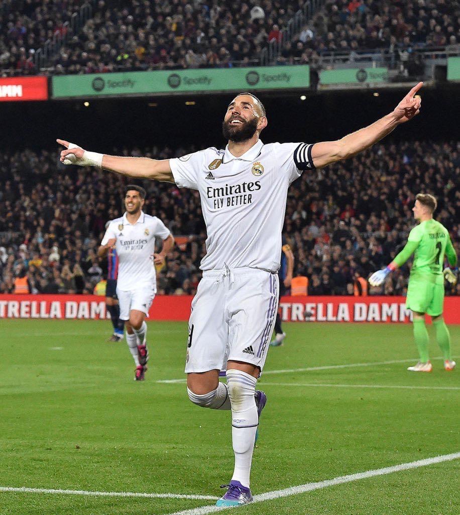 نجح فريق ريال مدريد في تحقيق الفوز على حساب برشلونة، بنتيجة أربعة أهداف دون رد، في المباراة التي جمعت بين الفريقين على ملعب كامب نو، ضمن منافسات إياب نصف نهائي كأس ملك إسبانيا. وبهذه النتيجة، تأهل فريق ريال مدريد إلى نهائي بطولة كأس ملك إسبانيا، حيث فاز على برشلونة بمجموع المباراتان، بنتيجة أربعة أهداف مقابل هدف وحيد،ويواجه ريال مدريد نظيره أوساسونا في نهائي كأس ملك إسبانيا، يوم 6 مايو القادم. وكان أوساسونا تأهل لمواجهة النهائي بعد الفوز على أتلتيك بلباو في مجموع اللقائين بنتيجة (2-1)،وهنا نستعرض ارقام قياسية للريال على حساب الغريم برشلونة ، 1-لأول مرة يخسر برشلونة الكلاسيكو بفارق أربعة أهداف منذ عام 1995. 2-وصل ريال مدريد لنهائي كأس ملك إسبانيا لأول مرة منذ عام 2014، عندها كان كارلو أنشيلوتي مُدرباً للفريق. 3-بنزيما هو ثاني لاعب في تاريخ ريال مدريد يسجل هاترك في الكامب نو بعد بوشكاش عام 1963. 4-احتاج كريم بنزيما ثمانية دقائق و أربعاً وأربعين ثانية ليُسجل ثنائية بمرمى برشلونة الليلة، هي ثاني أسرع ثنائية يُسجلها بمرمى برشلونة بعد ثنائيته بعام 2014 حيث احتاج ثلاث دقائق وأربعاً وعشرين ثانية ليُسجل ثنائية. 5-كريم بنزيما هو ثاني أكثر لاعب مُساهمة بالأهداف بتاريخ الكلاسيكو (25) هدف حيث سجّل (14) هدف وصنع (11) هدف، لا يتفوق عليه سوى ليونيل ميسي الذي ساهم في (40) هدف حيث سجّل (26) هدف وصنع (14) هدف. 6-أكبر انتصار لريال مدريد في الكلاسيكو منذ 5-0 في عام 1995. أكبر انتصار لريال مدريد في كامب نو منذ 1-5 في عام 1963. 7-كريم بنزيما هو ثاني لاعب يسجل 3 أهداف ويصنع واحد في مباراة الكلاسيكو بخارج أرضه، الأول كان ليونيل ميسي، في 23 مارس 2014 (3 أهداف وصنع واحد في سانتياجو برنابيو). 8-سجل كريم بنزيما أول هاتريك له ضد برشلونة (ب 43 مباراة بجميع المسابقات).