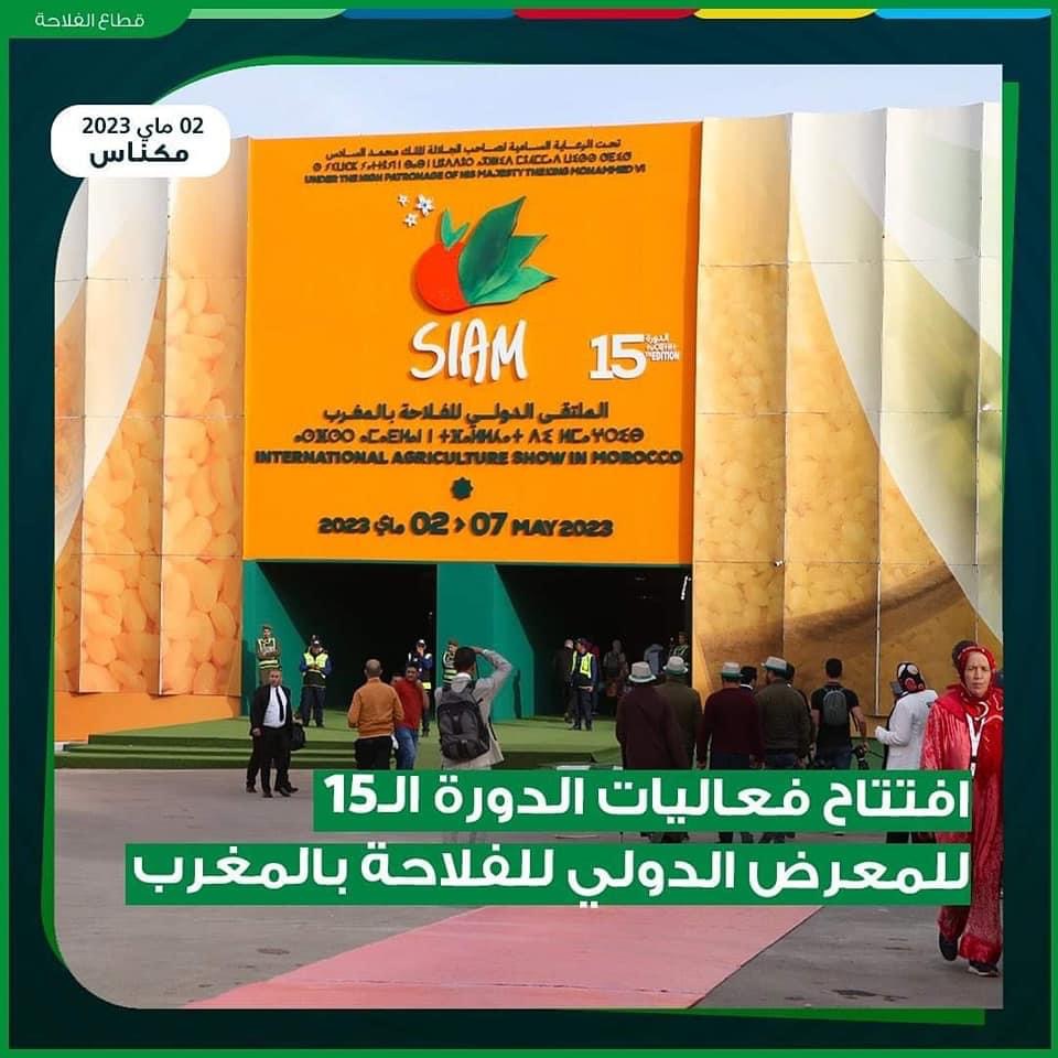 انطلقت يوم امس الثلاثاء 2 ماي 2023، الدورة 15 للملتقى الدولي للفلاحة بالمغرب ،بحضور رئيس الحكومة عزيز اخنوش ،وذلك بعد توقف لثلاث سنوات جراء تداعيات جائحة كورونا. وقام رئيس الحكومة رفقة كل من وزير الفلاحة والصيد البحري، محمد صديقي والوزير المنتدب المكلف والميزانية، فوزي لقجع، بجولة في أروقة المعرض الذي يضم 10 أقطاب تتوزع على المستشهرين والمؤسسات المساندة، وقطب المنتوجات الفلاحية، وقطب الطبيعة والبيئة، وقطب المؤتمرات والندوات، وقطب تربية المواشي، وقطب الجهات 12 للمملكة، والقطب الدولي، وقطب المستلزمات الفلاحية، وقطب المنتجات المجالية، وقطب الآلات والمعدات الفلاحية.