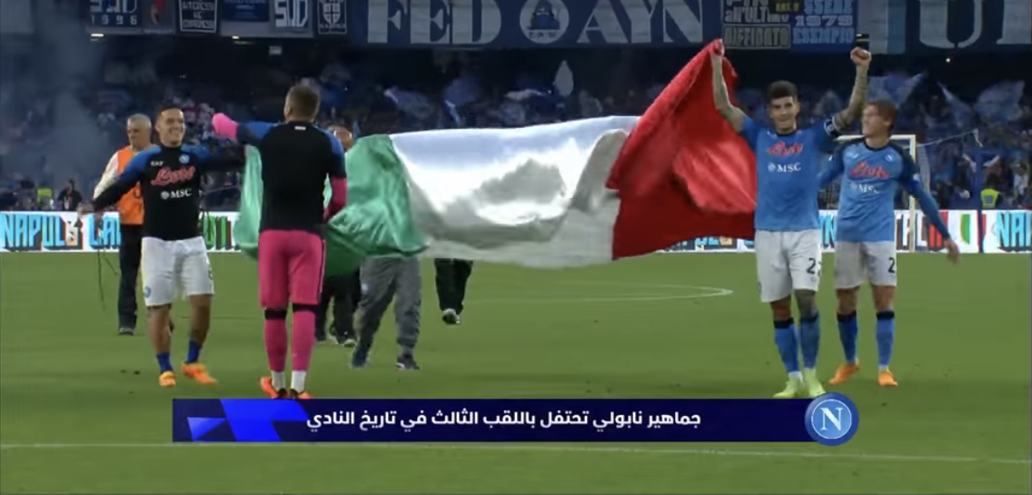 أشعل مشجعو نابولي الشموع للتعبير عن سعادتهم بلقبهم الثالث في التاريخ ، الدوري الإيطالي لموسم 2022-23 ، بعد تعادله 1-1 مع أودينيزي ، مساء الأربعاء الماضي ، في الجولة 33 من كالتشيو على ملعب فريولي، و اجتمع المشجعون في ملعب دييجو أرماندو مارادونا في نابولي أثناء استعدادهم للاحتفال بلقب الدوري الإيطالي هذا الموسم ، وهو أحد أهم مفاجآت الموسم في الدوريات الخمس الأولى، فمنذ الصباح الباكر، تجمع المشجعون حول ملعب مارادونا وشوارع المدينة ، وهو مشهد لم تره المدينة من قبل. وجاء هدفا المباراة عن طريق ساندي لوفريدج في الدقيقة 13 لصالح أودينيزي ، فيما سجل النجم النيجيري فيكتور أوسيمين في الدقيقة 52 لصالح نابولي. ونجح فيكتور أوسيمين في تعادل هدف الدولي جورج وياه برصيد 46 هدفًا ليصبح اللاعب صاحب أكبر عدد من الأهداف في الدوري الإيطالي. كما تفوق فيكتور أوسيمين على نجم الكاميرون إيتو ليصبح أول لاعب أفريقي في التاريخ يسجل 22 هدفاً في موسم واحد بالدوري الإيطالي. تصدرت نابولي ترتيب الدوري الإيطالي بـ 25 انتصاراً و 5 تعادلات و 3 هزائم ، وسجل 69 هدفاً واستقبلت شباكه 23 هدفاً برصيد 80 نقطة،وبذلك يفوز نابولي بلقب الدوري الإيطالي لأول مرة في تاريخ هذا القرن بعد فوزه مرتين عامي 1987 و 1990.