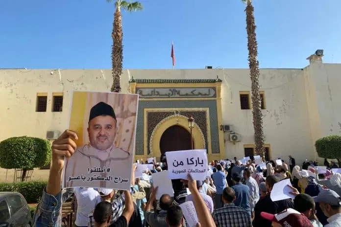 قضت محكمة الاستئناف بمكناس، في ساعة مبكرة من يوم الأربعاء، بتبرءة القيادي بجماعة العدل والاحسان، محمد أعراب باعسو ،بعد إسقاط تهمة الاتجار بالبشر التي كان يتابع بها. لكن، نفس المحكمة قررت الحكم عليه بسنة حبسا نافذا وغرامة 5000 درهم وتعويض 60 ألف درهم. وكان القيادي بالجماعة الذي يشتغل إطارا تربويا بمديرية مكناس، قد اعتقل في شهر نوفمبر الماضي ووجهت له تهم جنحية وجنائية منها تهمة الاتجار في البشر، وبذلك يكون قد قضى سبعة اشهر ونصف في السجن