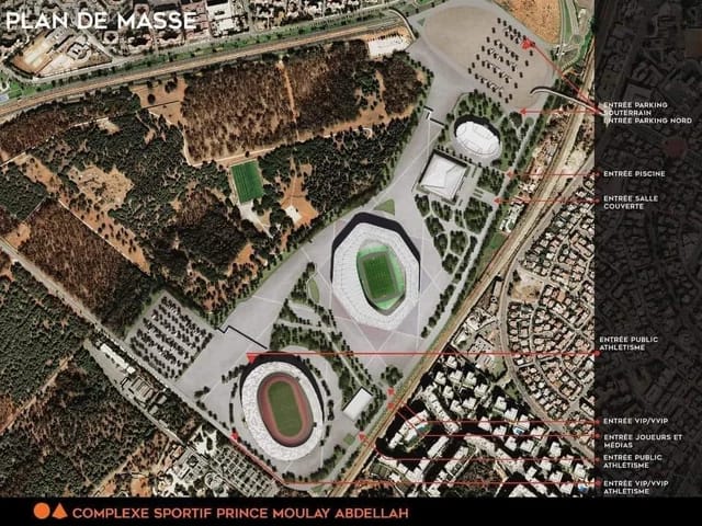 سيطال تغيير جدري ملعب الأمير مولاي عبد الله بالرباط. في هذا السياق، تم الكشف مؤخراً عن التصميم المحتمل لملعب الأمير مولاي عبد الله في الرباط، والذي يعد واحدًا من أكبر المشاريع الرياضية المتوقعة في المغرب. يأتي هذا الملعب كجزء من جهود المملكة لتحسين البنية التحتية الرياضية وتعزيز الرياضة والنشاطات الرياضية. الملعب المقترح سيتسع لحوالي 65,000 مقعد، مما يجعله ملعبًا ضخمًا يمكنه استضافة مباريات كبيرة وأحداث رياضية هامة. بالإضافة إلى ذلك، سيتضمن المشروع أيضًا ملعبًا لألعاب القوى بسعة 25,000 مقعد، مما يسهم في تعزيز تنوع الأنشطة الرياضية. الجدير بالذكر أن هذا المشروع يشمل أيضًا بناء مواقف سيارات متعددة لخدمة الجماهير، حيث يوجد موقف سيارات شمالي بطابقين تحت الأرض بسعة تصل إلى 3300 سيارة وموقف سيارات جنوبي بطابق تحت الأرض بسعة 1900 سيارة. ولتسهيل وصول الجماهير إلى الملعب، سيتم بناء موقف سيارات في الهواء الطلق في منطقة الرياض وفي حي بريستيجيا. إلى جانب ذلك، سيتم إنشاء قنطرتين للراجلين لتوفير وسائل آمنة لعبور الطرق المزدحمة باتجاه الملعب. ستكون هذه القنطرتان مفيدة للجماهير والمشجعين الذين يرغبون في الوصول إلى الملعب بأمان. كما سيتم ربط الملعب بشبكة الترامواي، مما يسهل على الجماهير استخدام وسائل النقل العامة للوصول إلى الملعب بسهولة.