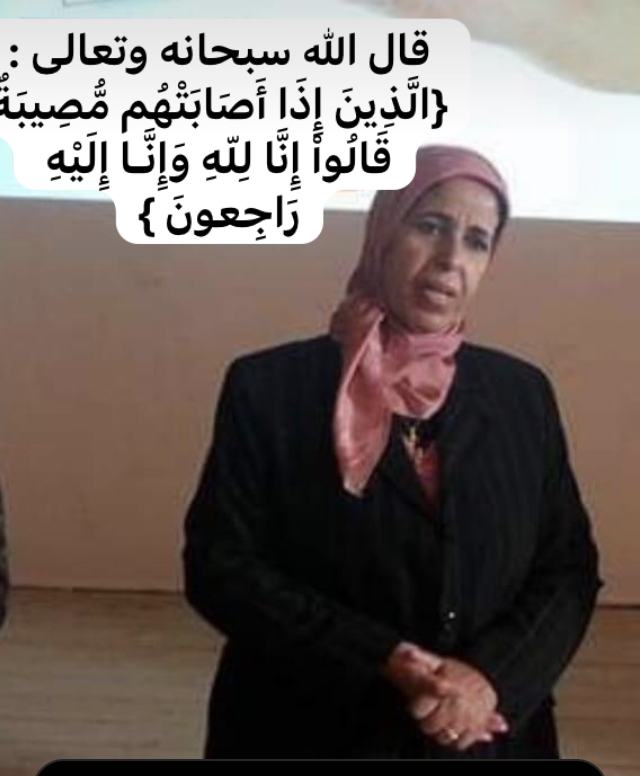يا أيتها النفس المطمئنة، ارجعي إلى ربك راضية، مرضية فادخلي في عبادي وادخلي جنتي بقلوب خاشعة راضية بقضاء الله وقدره تلقى رجال التعليم بعين الشق وخاصةً اساتذة التعليم بالثانوية التأهيلية عبد الكريم الخطابي ،صباح اليوم الاثنين 25 شتنبر 2023 خبر وفاة الناظرة السابقة للثانوية اساتذة خديجة هدوان ،وبهذه المناسبة الأليمة يتقدم جميع الأساتذة والأطر التربوية ،بأحر التعازي الى عائلتها الكبيرة والصغيرة ، راجين الله سبحانه ان يرحمها رحمة واسعة دائمة و يرفع مقامها في الصالحين ،وان يرزق اهلها الصبر والسلوان ،و إنا لله وإنا إليه راجعون