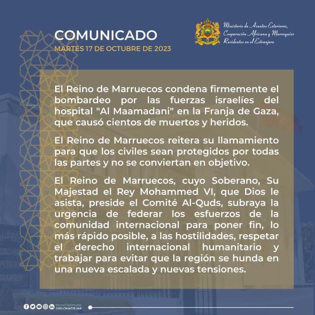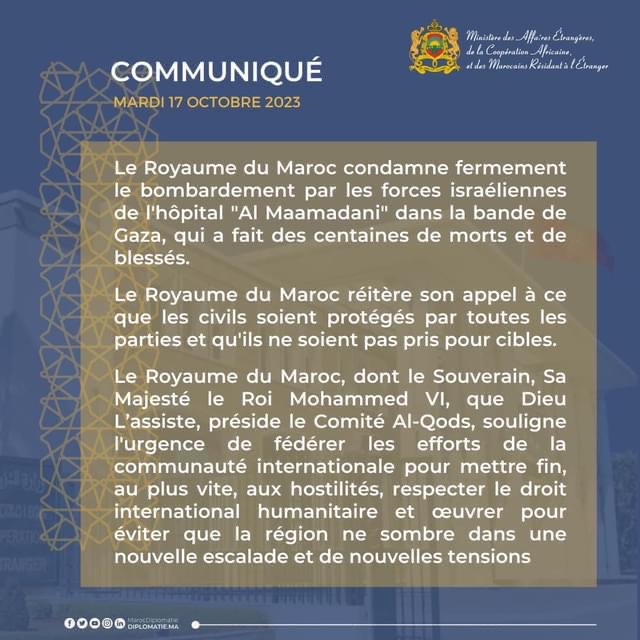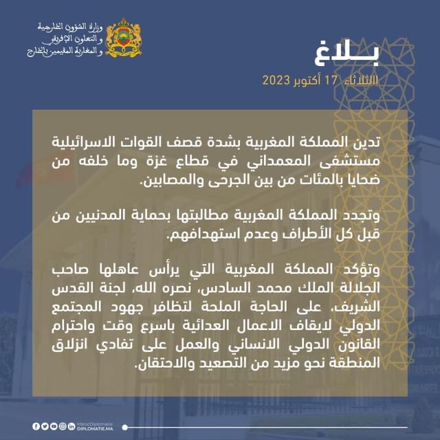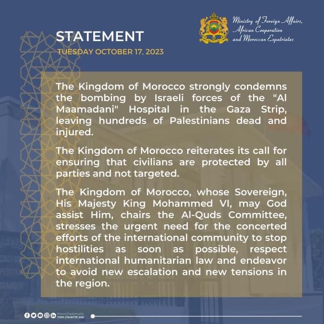 المغرب يدين بشدة قصف مستشفى المعمداني الذي خلف مئات الشهداء