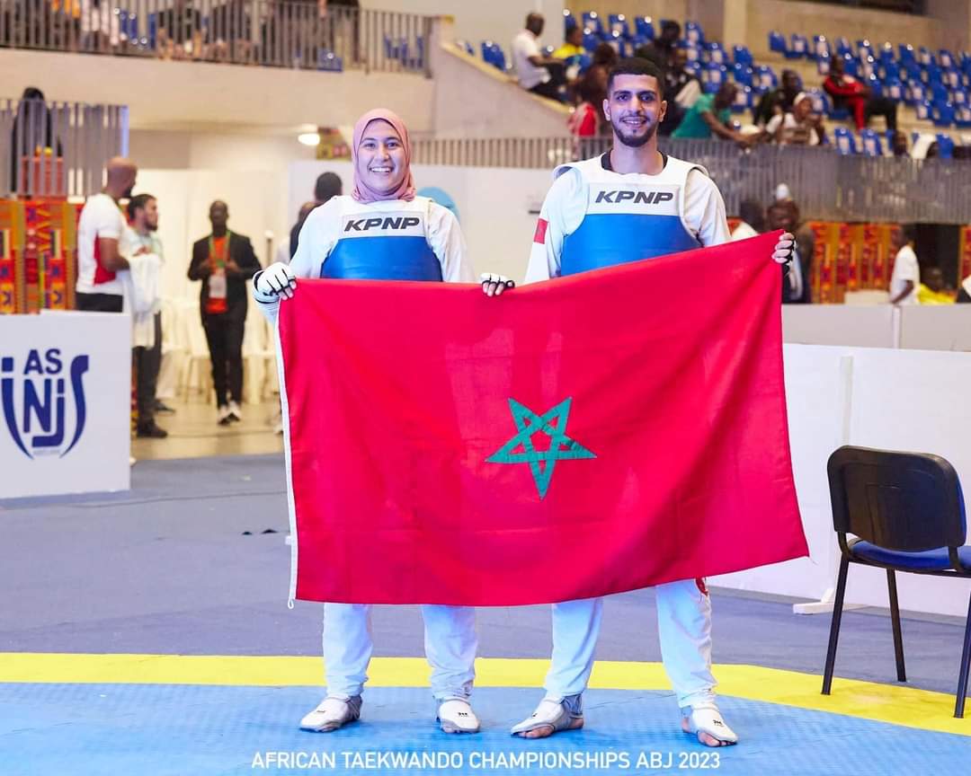 فاز المنتخب الوطني المغربي للتايكوندو بلقب بطولة إفريقيا للأمم التي احتضنتها أبيدجان بكوت ديفوار يومي 5 و6 نونبر الجاري. وتوج الفريق الوطني بطلا للدورة عقب احتلاله المركز الأول برصيد 11 ميدالية (7 ذهبية و1 فضية و3 برونزية). وتصدر المغرب الترتيب العام للبطولة في فئتي الذكور والإناث متقدما على مصر بذهبيتين وأربع فضيات وسبع برونزيات، ثم كوت ديفوار بذهبيتين وخمس فضيات وثلاثة برونزيات. وعادت الميداليات الذهبية التي أحرزتها العناصر الوطنية لكل من أيوب الباسل في وزن أكثر من 87 كلغ، وسفيان العصبي في وزن أقل من 87 كلغ، وهيثم الزغوطي في وزن أقل من 74 كلغ، وسكينة الصاحب في وزن أقل من 46 كلغ، وأميمة البوشتي في وزن أقل من 53 كلغ ، وأميمة بومح في وزن أقل من 73 كلغ، وفاطمة الزهراء أبو فارس في وزن أكثر من 73 كلغ. وكانت الميدالية الفضية الوحيدة من نصيب مريم خولال في وزن أقل من 62 كلغ. اما الميداليات البرونزية الثلاث فآلت لكل من صفية صالح في وزن أقل من 67 كلغ، ويوسف باعتريس في وزن أقل من 80 كلغ، وعبد الباسط وصفي في وزن أقل من 63 كلغ.
